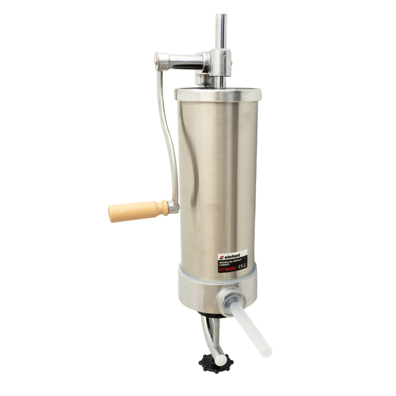 Aparatul ELEFANT KY-2006C este o versiune îmbunătățită, recomandată pentru cei care doresc o capacitate mai mare și o utilizare frecventă. Realizat integral din inox alimentar, este rezistent, igienic și ușor de curățat, fiind ideal pentru gospodării mari sau pentru producerea cârnaților în cantități mai ridicate.