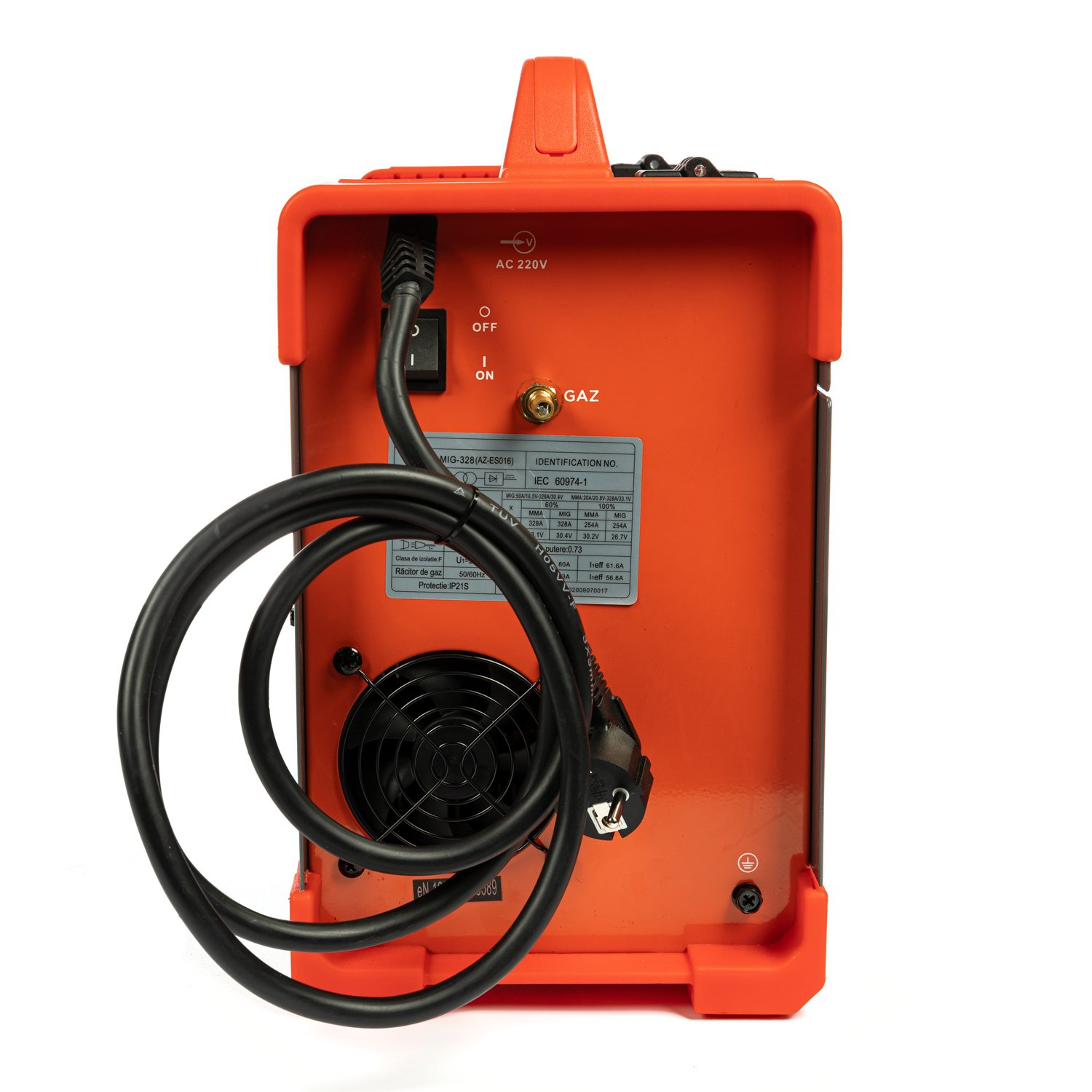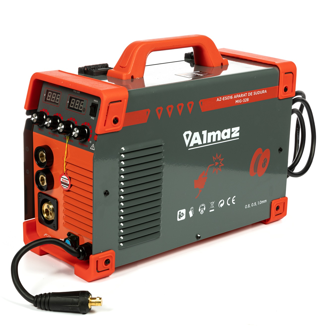 Aparatul de sudura MIG-328, Almaz AZ-ES016, este un echipament de sudura compact, usor si portabil, destinat sudarii de tip Mig(fir metalic in gaz inert) pentru obtinerea unei imbinari curate, netede si rezistente pentru aplicatii complexe sau pentru sudari de tip MMA(cu electrozi inveliti) pentru lucrari usoare de intretinere si reparatii.