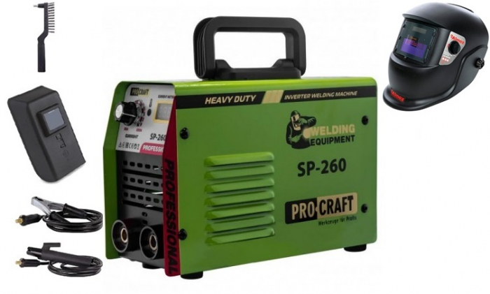 Aparatul de sudură cu invertor Procraft SP260 este disponibil pentru sudarea rapidă și fiabilă a pieselor metalice în medii casnice. Mașina poate funcționa într-o gamă extinsă de tensiuni de intrare, cu o calitate stabilă a sudurii și caracteristici de curent flotant. Versatilitatea asigură faptul că poate funcționa cu electrozi cu diametrul de la 1,5 la 4 mm. Aparatul este ușor de transportat, datorită greutății reduse de 2,8 kg și dimensiunilor sale modeste.