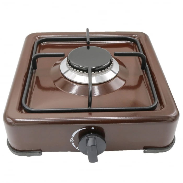 Aragaz emailat, 1 arzator, maro. Este solutia ideala pentru a gati rapid si simplu pentru acasa, cand nu aveti suficient spatiu pentru un aragaz conventional, sau in excursie, fiind foarte usor si compact.