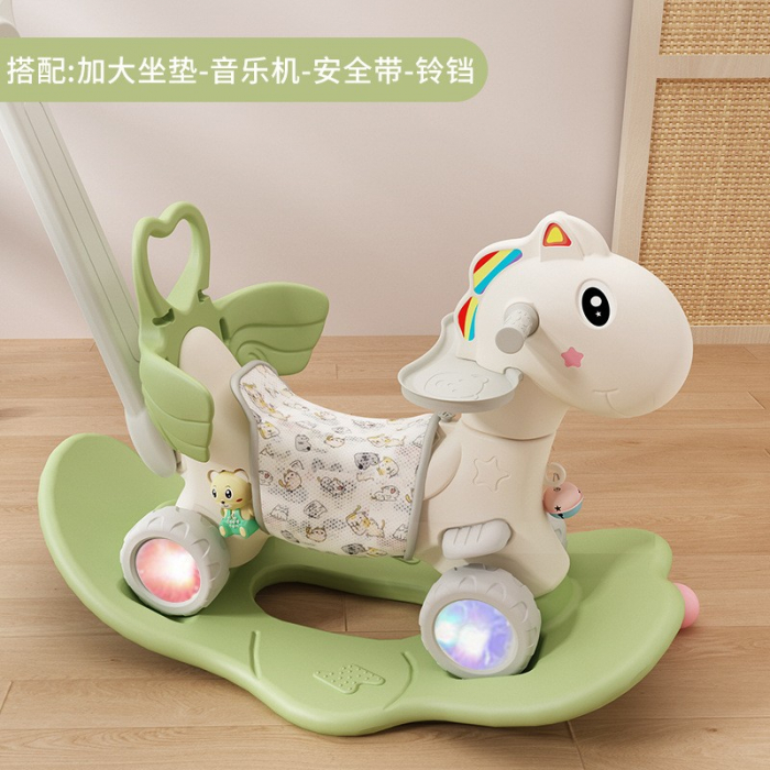 Balansoar pentru Copii, Flippy, 3in1, cu Spatar si Bara de Siguranta, Maner cu Cos de Basket, Tava de Masa, Roti Luminoase, 80 x 43 x 83 cm, din Plastic, + 3 Ani, Verde