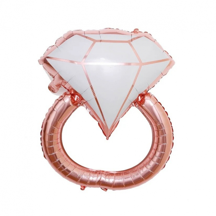 Balon din Folie Metalizata, Flippy, Figurina Inel de Logodna, Model Diamant, Tema Nunta, 60 cm, Ambalaj Individual, Pai Inclus, Umflare cu Aer sau Heliu, Roz