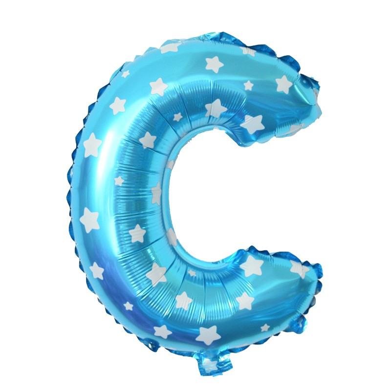 Balon Folie Metalizata Litera C, Flippy, 40 cm, Cu Imprimeu Stelute, Umflati cu Heliu sau Aer, Ambalaj Individual, Pai inclus, Albastru