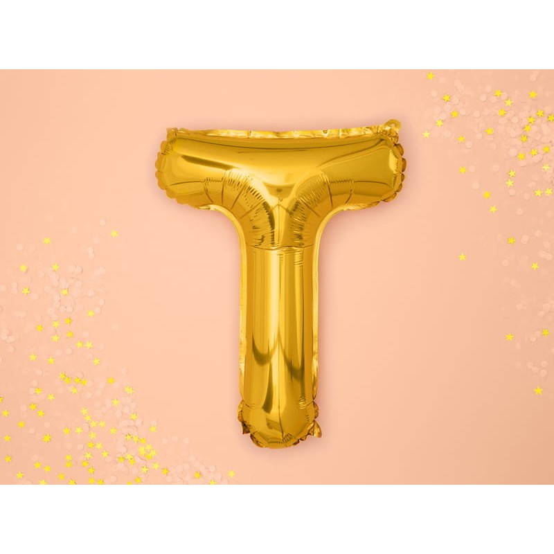 Balon Folie Metalizata Litera T, Flippy, 40 cm, Umflati cu Heliu sau Aer, Ambalaj Individual, Pai inclus, Auriu