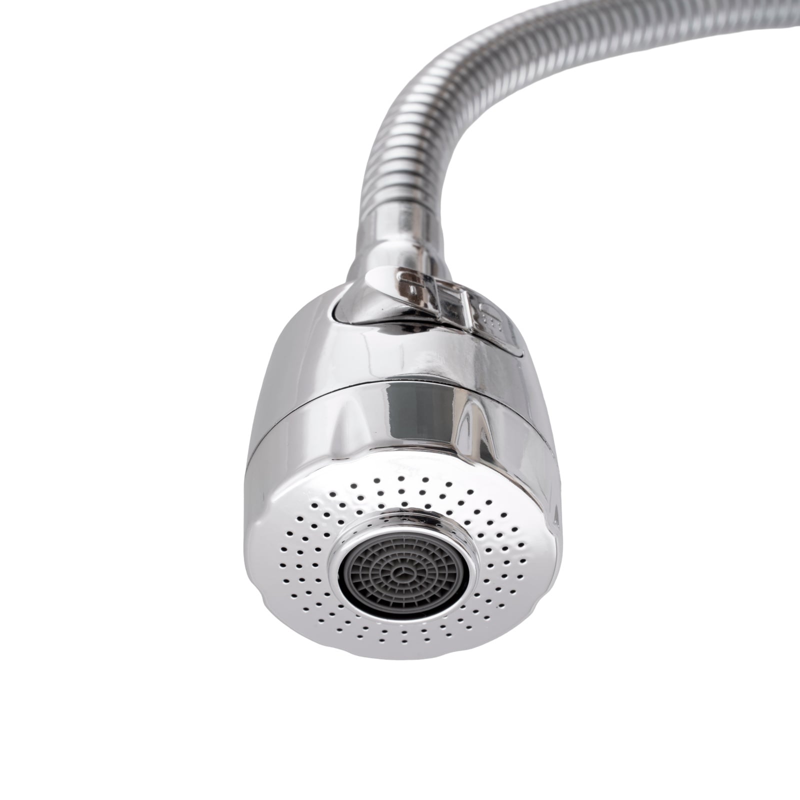 Bateria WAVE-Z-777 este concepută pentru bucătării moderne unde versatilitatea și eficiența sunt esențiale. Pipa flexibilă de 43 mm permite o manevrabilitate completă și reglarea precisă a direcției jetului de apă, în timp ce cele două funcții de debit facilitează atât spălarea vaselor, cât și umplerea rapidă a recipientelor sau curățarea chiuvetei.