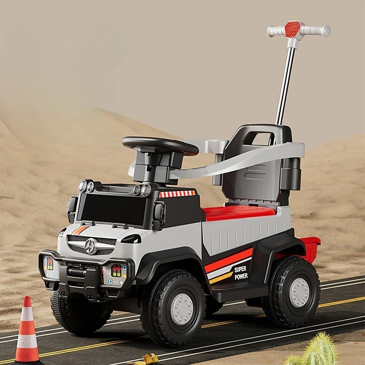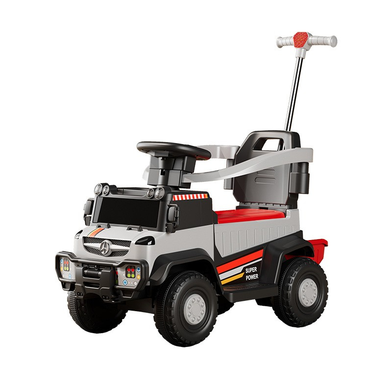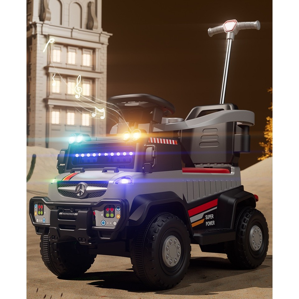 BF-Masinuta Electrica, Flippy, pe 4 Roti, cu Telecomanda si Maner Detasabil, Cos de Depozitare, Lumini Led si Muzica, +1 an, Greutate Portanta 40 kg, Gri