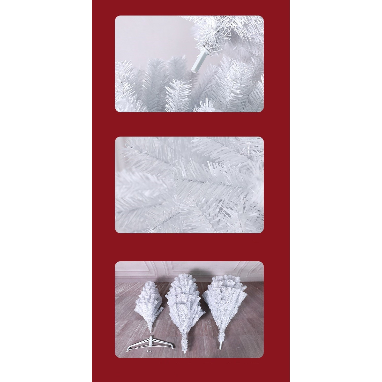 Asamblare: Acest brad artificial se asambleaza foarte usor, fiind format din 3 bucati ale axului central care se aseaza una peste cealalta, iar apoi se regleaza pozitia crengilor principale si se desfac complet toate crengutele secundare.