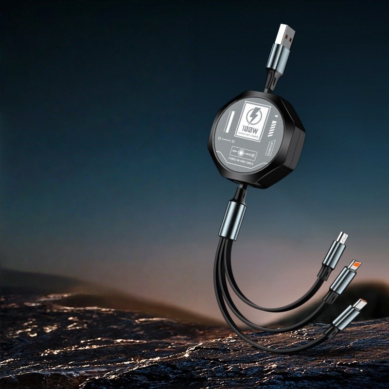 Un accesoriu premium pentru incarcare rapida si eficienta, acest cablu 3-in-1 cu design retractabil este solutia perfecta pentru utilizatorii activi si organizati. Ideal pentru acasa, masina sau calatorii, acest model combina putere, durabilitate si versatilitate intr-un format compact.