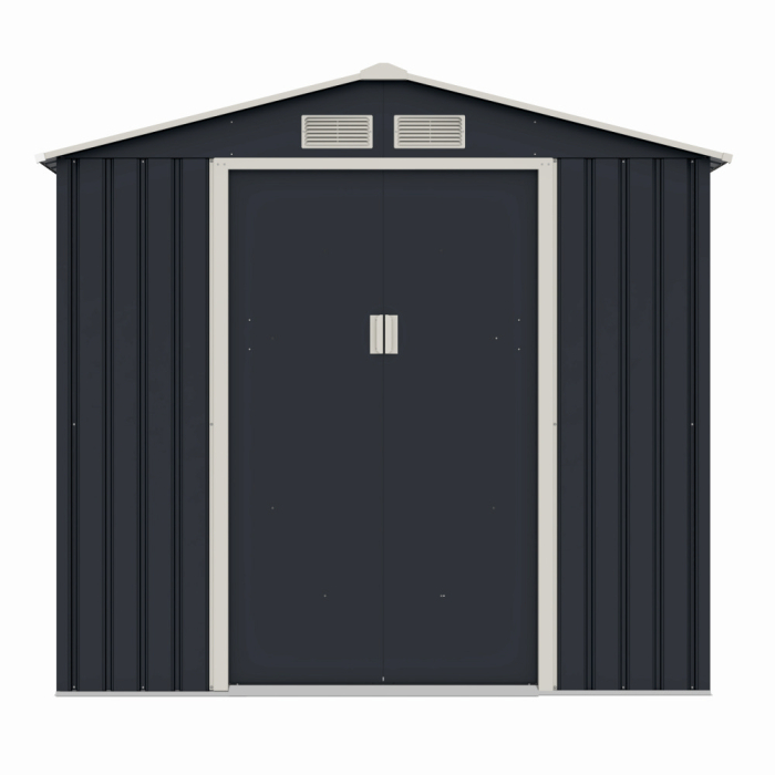 Casuta / magazie de gradina premium metalica MESTERINO Archer-A, Gri/Bej, dimensiuni 213x131x195 cm, cu usi culisante si baza metalica