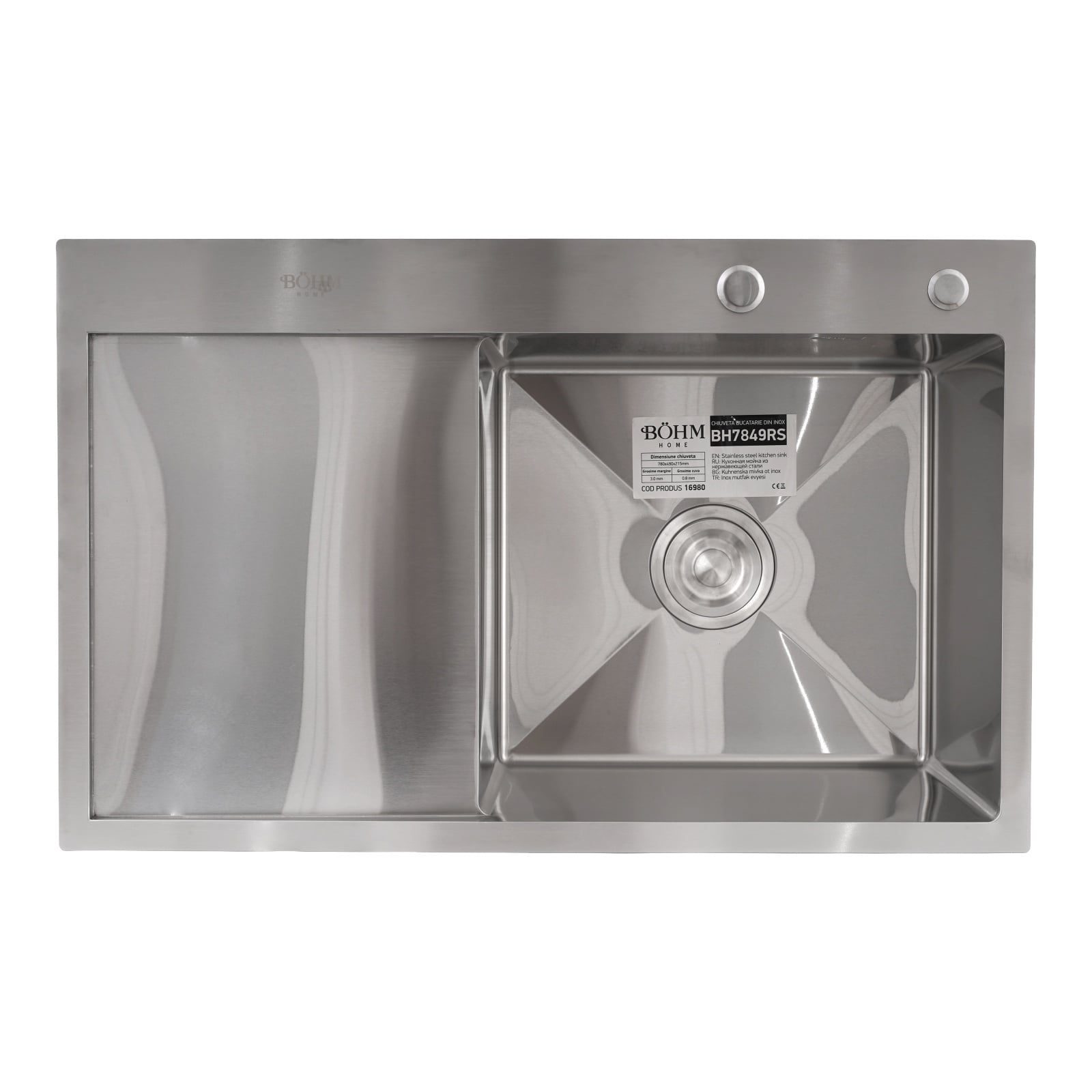 BH7849RS este o chiuvetă de bucătărie realizată din inox alimentar de cea mai bună calitate, concepută pentru cei care își doresc un produs durabil, igienic și cu un aspect elegant, potrivit pentru orice tip de bucătărie modernă. Fiind construită din inox alimentar SUS304, standardul de referință în industria echipamentelor profesionale, chiuveta oferă o rezistență excelentă la coroziune, zgârieturi, temperaturi ridicate și substanțe acide întâlnite frecvent în procesul de gătire. Acest tip de oțel este renumit pentru proprietățile sale igienice, neporoase, ceea ce înseamnă că nu absoarbe mirosuri, nu păstrează bacterii și se curăță ușor, chiar și după o utilizare intensă.