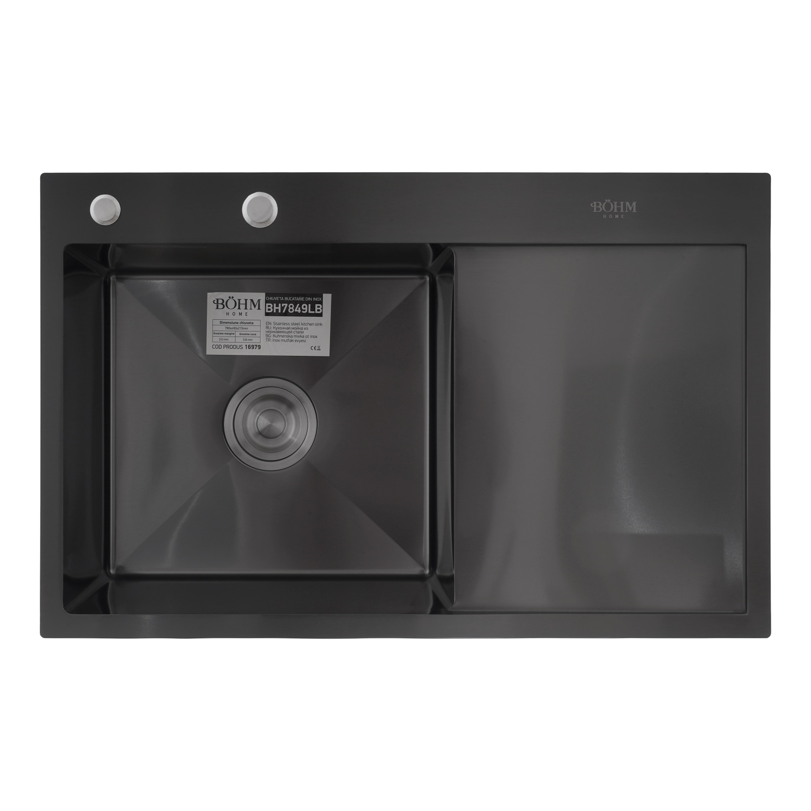 BH7849LB este o chiuvetă de bucătărie premium realizată din inox alimentar de înaltă calitate, concepută special pentru utilizatorii care își doresc o zonă de lucru spațioasă, modernă și rezistentă în timp. Fabricată integral din inox alimentar SUS304, unul dintre cele mai sigure și durabile materiale utilizate în industria bucătăriilor profesionale, această chiuvetă oferă protecție superioară împotriva coroziunii, petelor, acizilor alimentari și uzurii zilnice. Suprafețele sunt tratate pentru a rezista la schimbările bruște de temperatură, la lovituri și la utilizarea intensă, ceea ce o transformă într-o soluție excelentă pentru bucătăriile familiale sau semiprofesionale.