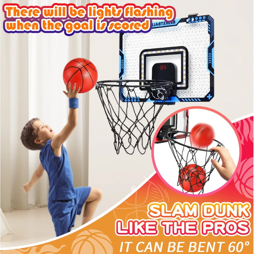 Descriere Produs: Cos de Baschet pentru Copii Flippy cu Tabou de Bord Electronic, Minge și Pompa – 2 Moduri, Interior/Exterior