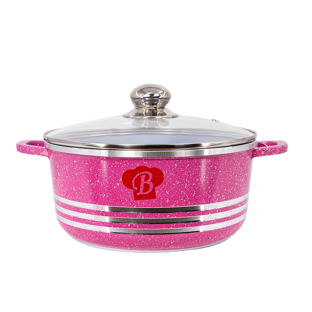 Oala minune, realizata stratificat de tipul ,,gros-subtire-gros'' impreuna cu baza perfect plata, permite distribuirea uniforma a caldurii, fapt ce asigura gatirea rapida si corecta pentru toate tipurile de alimente. Prepararea alimentelor se face cu cantitati minime de ulei. Ofera rezultate excelente la gatit atat la temperatura medie sau inalta de pana la 600 de grade, poate fi introdusa in cuptor, de asemenea invelisul neaderent faciliteaza curatarea usoara a vasului. Diametru: 28 cm Capacitate : 6,5 Litri Culoare interior : Gri cu aspect de piatra Culoare exterior: Roz cu aspect de piatra Capac: din sticla termorezistenta cu maner din inox Sursa de caldura: Gaz, Electric, Halogen Numar straturi de baza: 3 Instructiuni de folosire: A nu se folosi la interior ustensile din materiale metalice , pentru amestecarea alimentelor se vor folosi ustensile din silicon sau lemn, pentru curatare se vor folosi detergent de vase si burete neabraziv Numar bucati per set : 1 Continut pachet : 1x cratita cu capac 28 cm Material : Aluminiu turnat cu interior marmorat