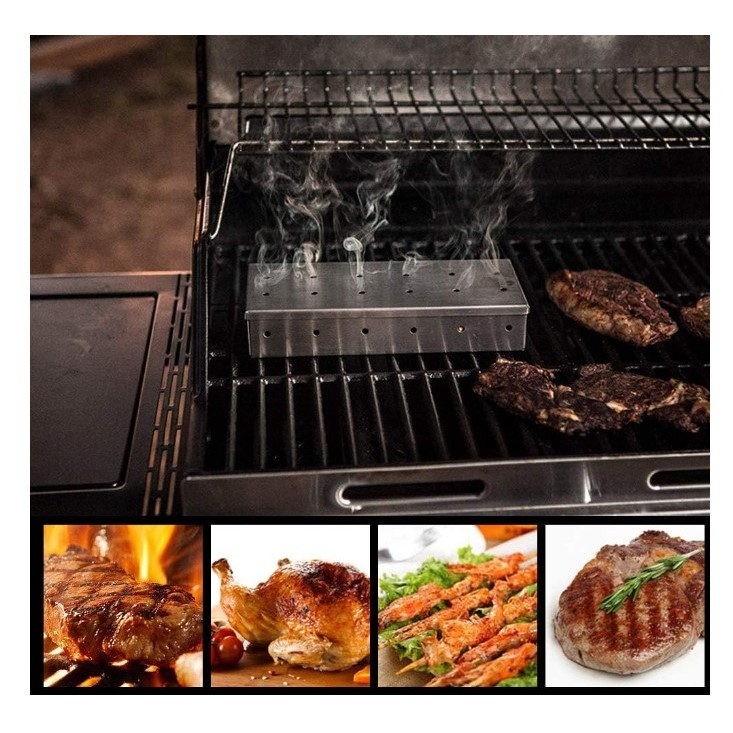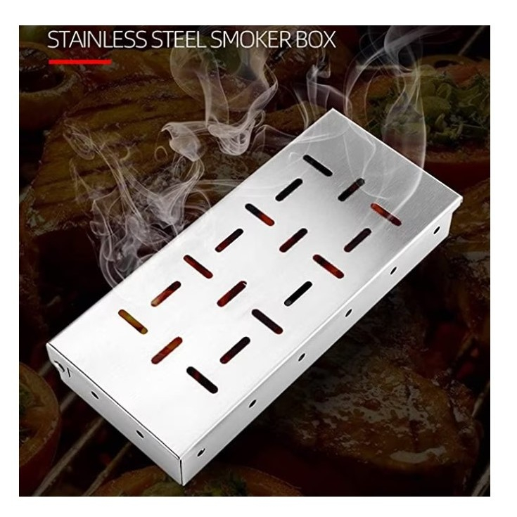 Design de mare capacitate: dimensiune: 22x9,5x4,2cm, cutia de afumator pentru gratar cu aschii de lemn si cutia de fum pentru afumator pentru lemn ofera suficient spatiu pentru a pastra o cantitate mare de aschii de lemn, fumul este emis in mod constant pentru o lunga perioada de timp.