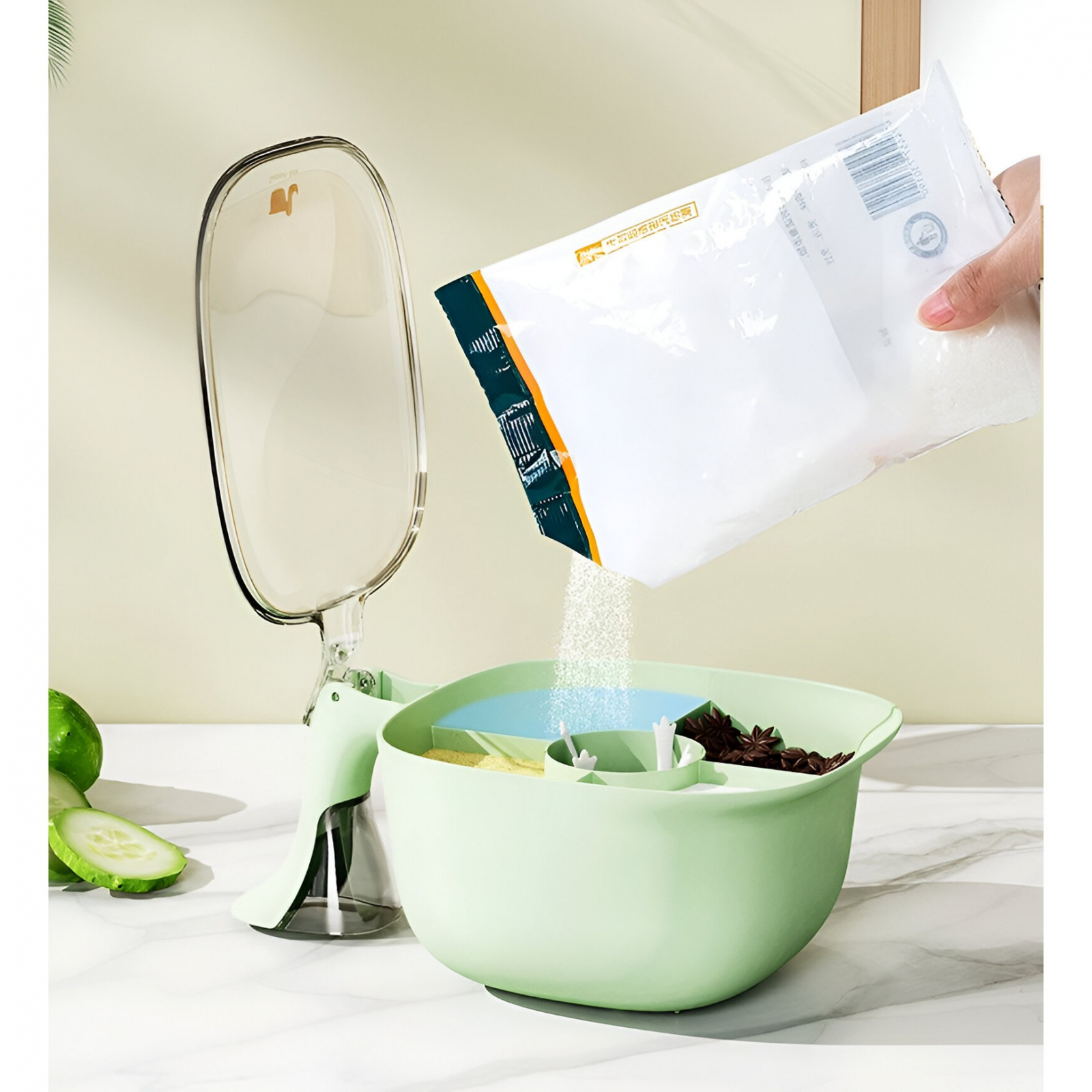Designul transparent al capacului permite vizualizarea condimentelor, performanță bună de etanșare, barieră împotriva umezelii și prafului.