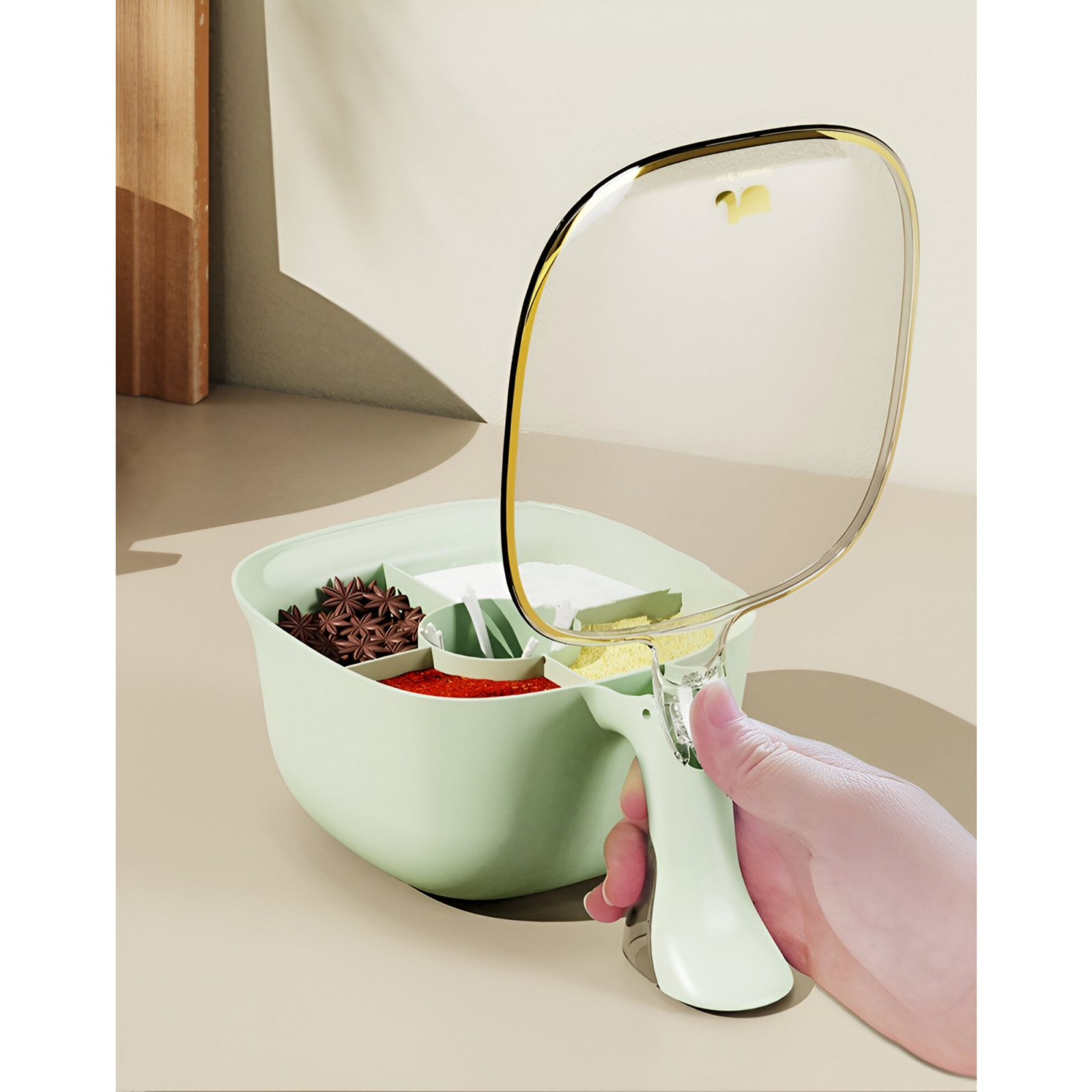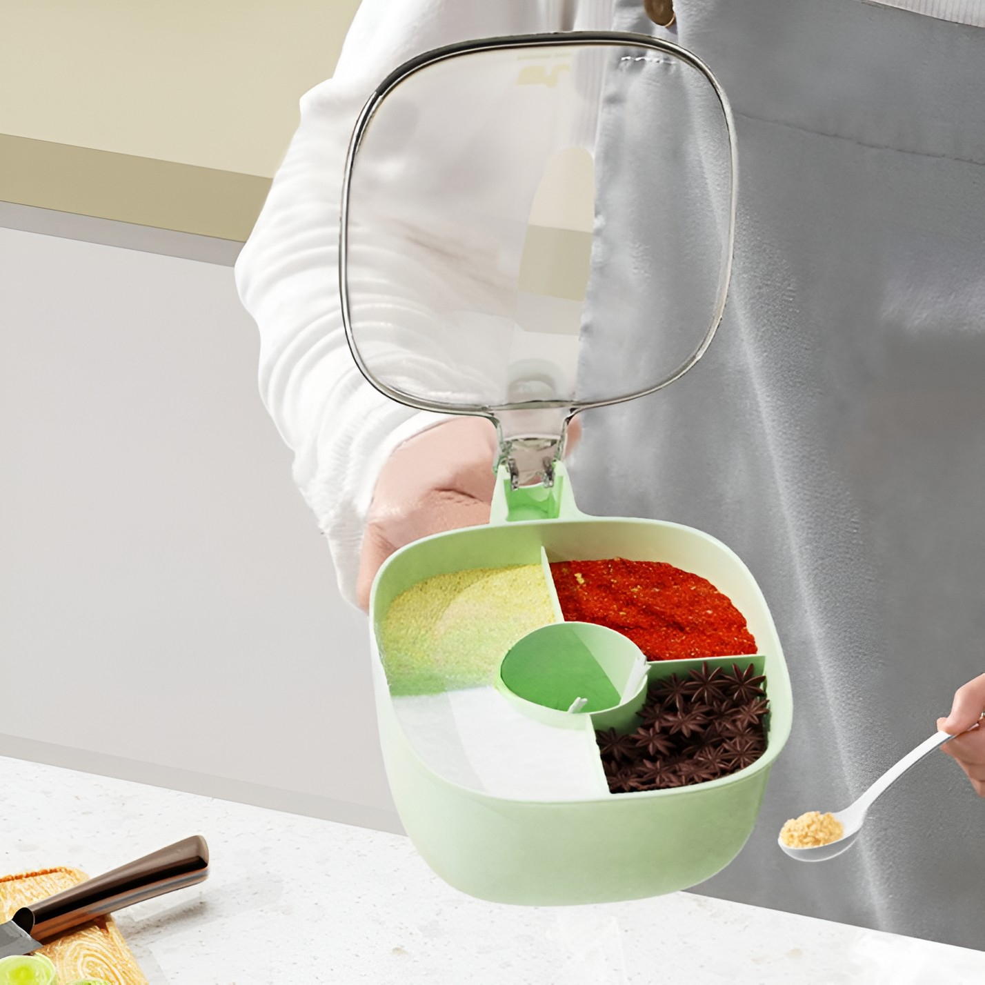 Poate stoca diverse tipuri de condimente. Când trebuie să utilizați un anumit tip de condimente, trebuie doar să ridicați capacul. Este practic și păstrează aromele condimentelor.