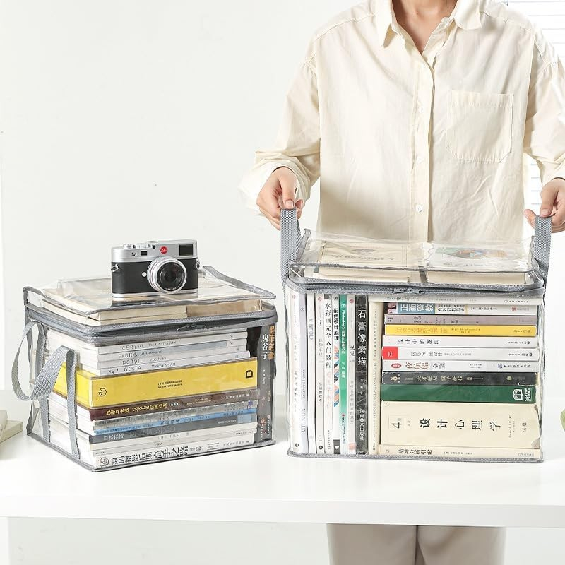 Cutie de Depozitare, Flippy, din PVC+Textil, Rezistentă la Apă, Geantă Multifuncțională pentru Cărți, 38x24x32 cm, Transparent-Alb