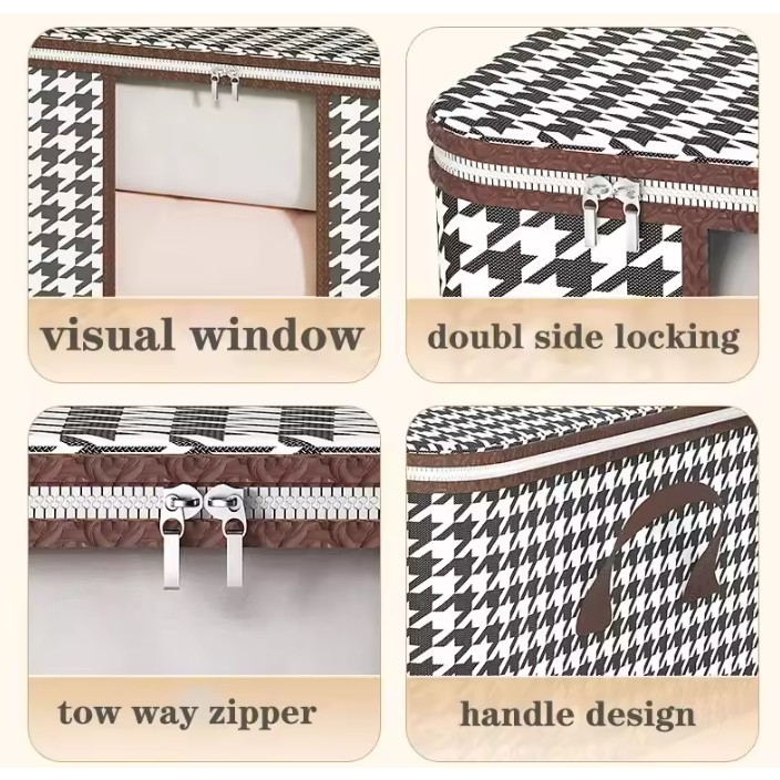 Fereastră Frontala cu Fermoar Bidirecțional: Datorită feronerie bidirecționale, ai acces rapid și ușor la conținutul cutiei. Fereastra transparentă îți permite să vezi instantaneu ce se află în interior, evitând astfel căutările inutile.