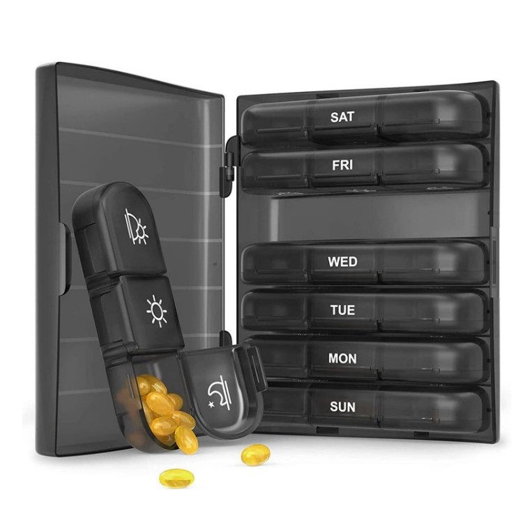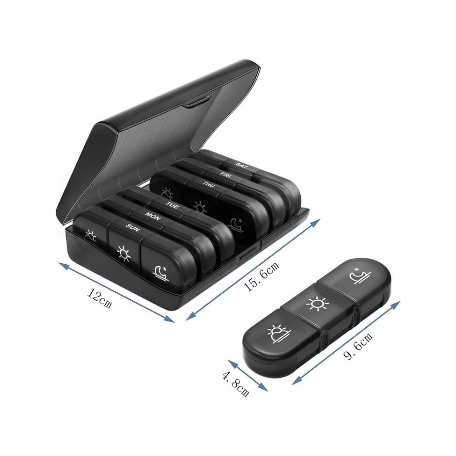 ORGANIZATOR DE PILULE PENTRU 7 ZILE: Compartimentele pentru pilule divizate dimineata, dupa-amiaza si seara - faciliteaza planificarea dozelor zilnice.
