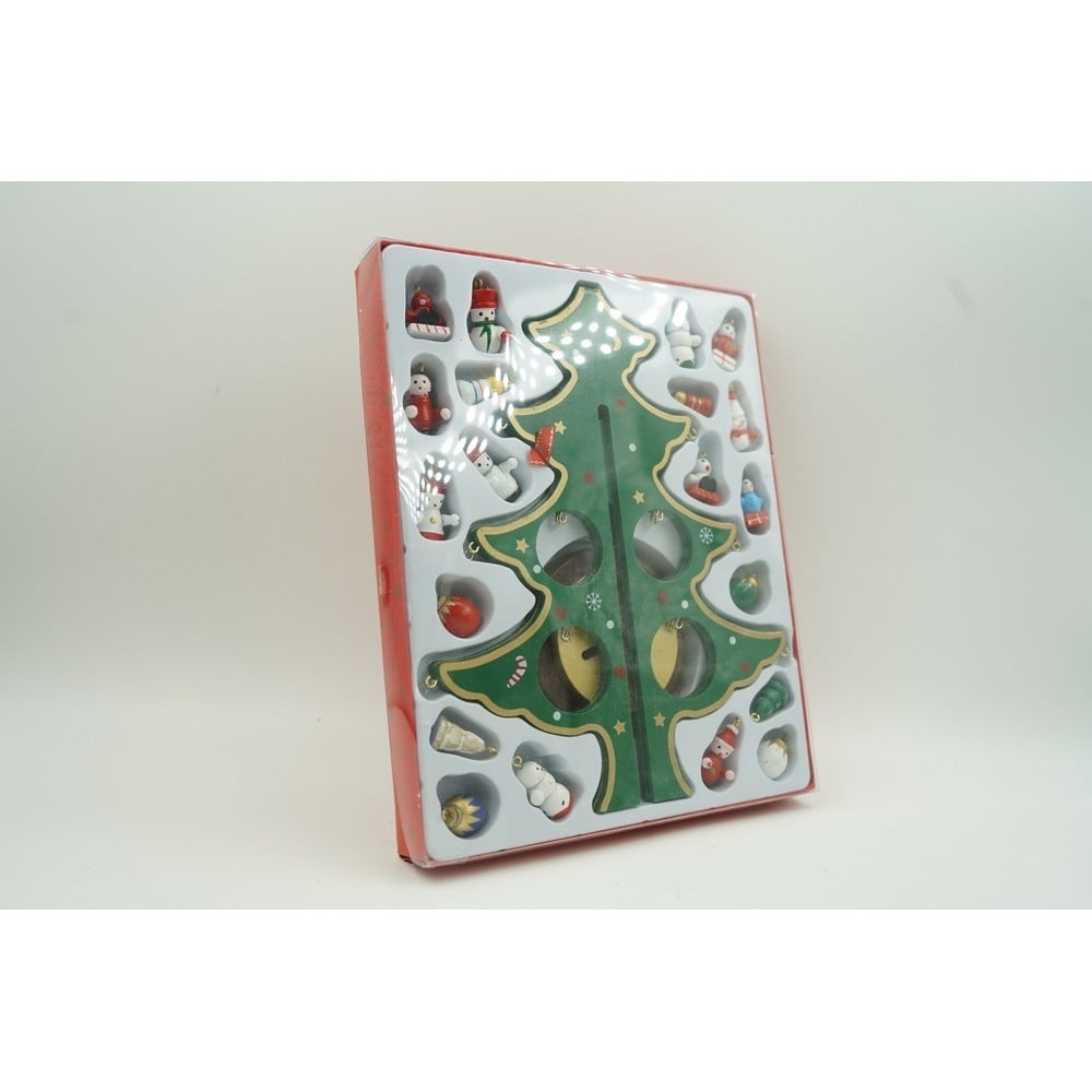 Lichidare Decoratiune Craciun, Brad, Verde, 8 cavitati cu ornamente, 18.5 cm x 25 cm, Lemn, Flippy