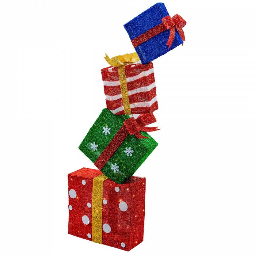 Decoratiune Craciun pe cadru de sarma cu material textil si leduri, dimensiune 32x12x95cm , 45 led-uri, lumina calda, cu jocuri de lumini, alimentare la priza, MI-708