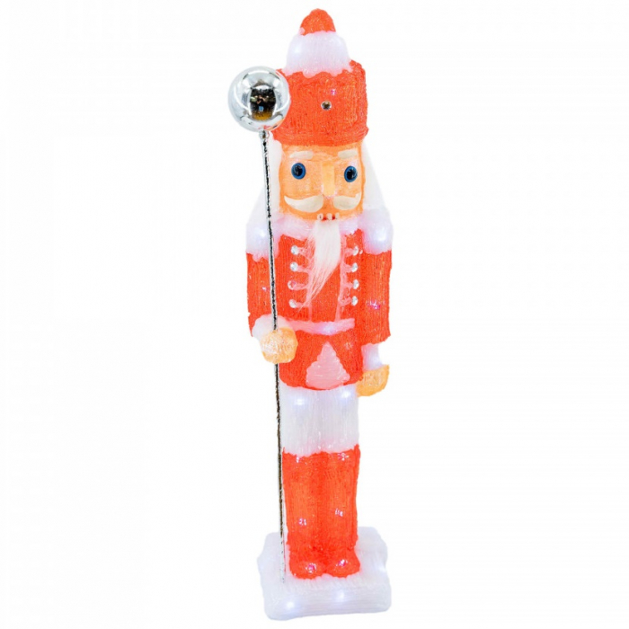 Decoratiune de exterior cu lumini , Spargator de nuci, din acril, dimensiune 14x12x63 cm, 8 jocuri de lumini, 60 led-uri, lumina rece, cablu de alimentare 3m, IP44, MI-1042