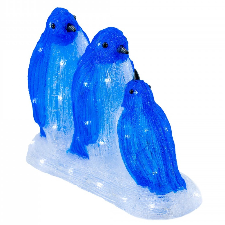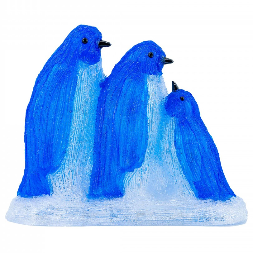Decoratiune de exterior, Familie de Pinguini, din acril, dimensiune 38x15.5x31cm, 8 jocuri de lumini, 60 led-uri, lumina rece, cablu 3m, protectie IP44, MI-1066