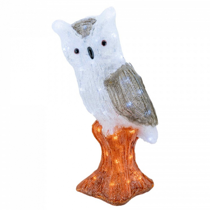 Decoratiunede exterior cu lumini, Bufnita, din acril, dimensiune 21x14x40cm, 8 jocuri de lumini, 80 led-uri, lumina rece, cablu de alimentare 3m, protectie IP44, MI-1061