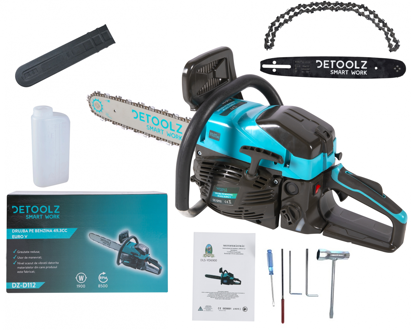 Continut colet drujba pe benzina 49.3CC, Euro V, Detoolz DZ-D112: