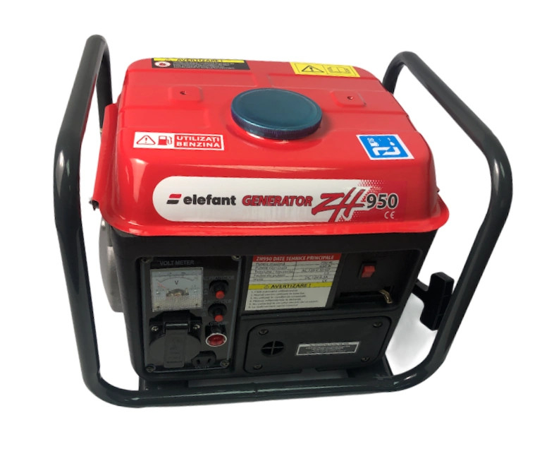 Generatorul ZH950 este folosit in mediile gospodaresti si comerciale pentru alimentare cu curent electric in situatiile si locurile in care acesta lipseste temporar sau nu este disponibil. Generatorul are o putere nominala de 650 W si tensiune de 230 V cu frecventa de 50 Hz. Sistemul NU este insotit de un mecanism electronic de reglare a tensiunii (AVR), deci este recomandata atasarea unui redresor extern. Motorul tip OHV, (axul cu came pozitionat in interiorul blocului), in 2 Timpi, functioneaza cu un singur cilindru si are o capacitate de 63 de centimetri cubi. Acest ansamblu genereaza 1 CP si poate face fata cu usurinta unui consum de pana la 750 W. Pornirea se face manual, prin demaror. In manualul de utilizare gasiti detaliile despre pasii de urmat pentru pornire. Rezervorul are o capacitate de 4 Litri de benzina folosita in amestec cu ulei in proportie de 1:50. (ATENTIE!!! NU utilizati benzina fara ulei). Rezervorul se va umple cu benzina doar daca intentionati sa-l puneti in functiune. Nu este recomandata pastrarea benzinei in rezervor mai mult de 30 de zile fara a fi consumata.