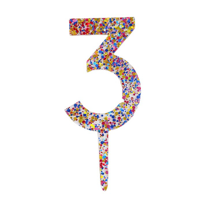 Adauga un plus de eleganta si stralucire torturilor tale cu Topper-ul decorativ Flippy in forma de cifra 3. Realizat din acrilic transparent, acest topper este decorat cu fulgi de sclipici multicolori, oferind un efect vizual spectaculos si festiv. Este alegerea perfecta pentru aniversari, petreceri tematice sau alte evenimente speciale unde fiecare detaliu conteaza.