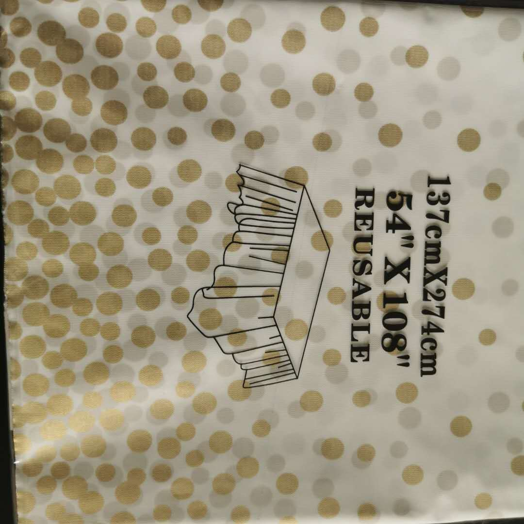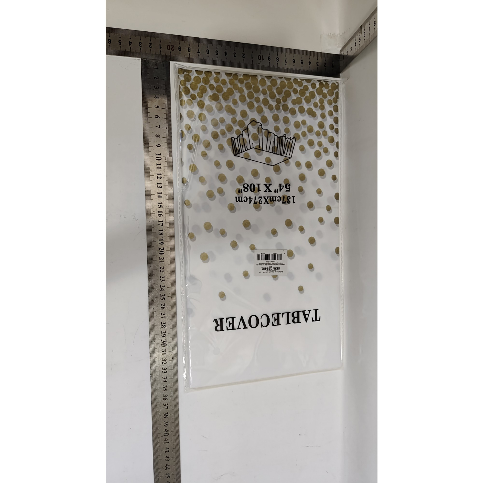 Fata de masa dreptunghiulara, Flippy, Impermeabila, Anti-pete, Pentru petreceri, nunti, botezuri, decoratiuni, 274x137cm, Auriu/Alb