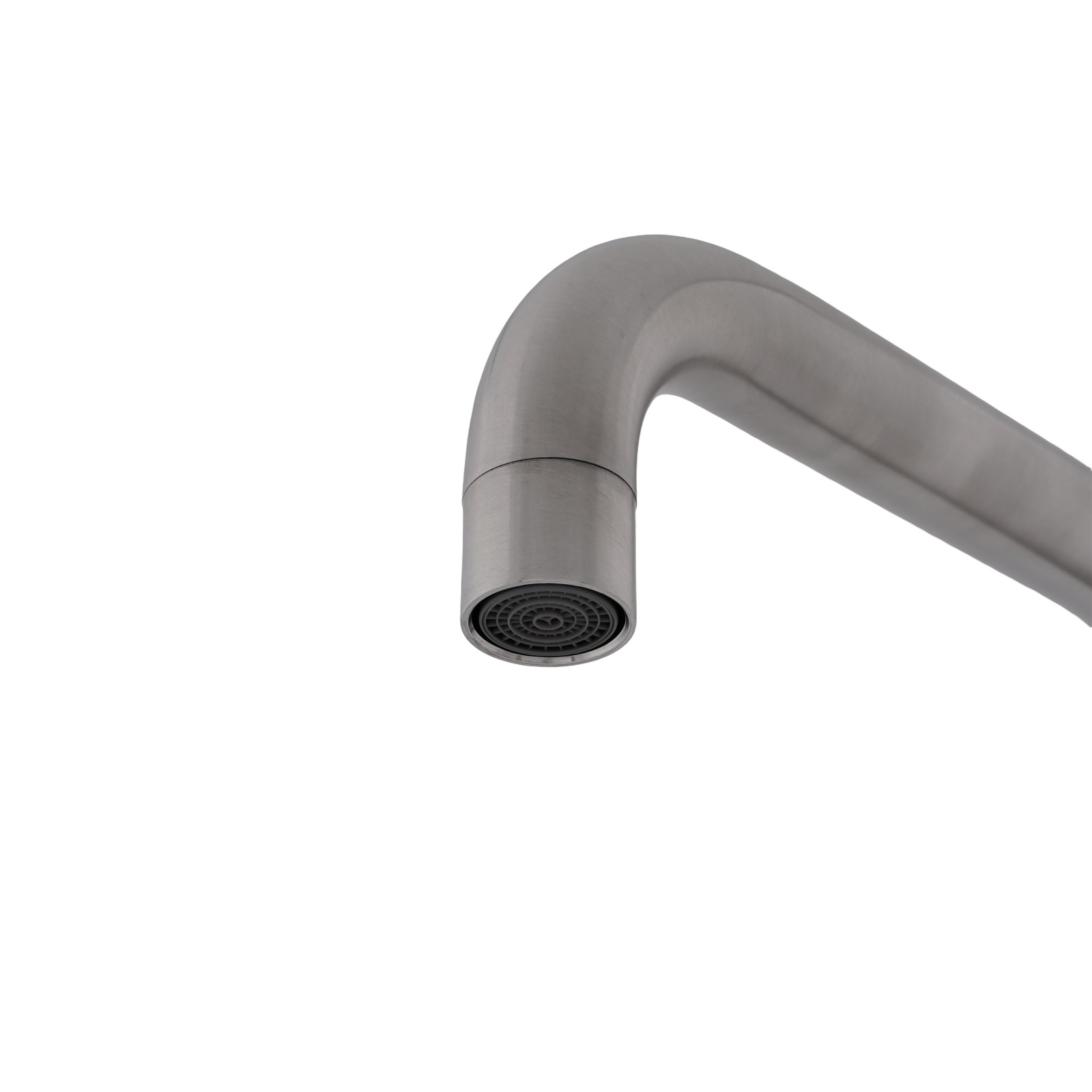 Modelul FB-011 G este o variantă compactă, cu pipă fixă rotativă la 360°, ideală pentru spații mai restrânse, fără a compromite funcționalitatea sau calitatea. Fabricată din inox SUS 304, oferă fiabilitate ridicată și rezistență la coroziune.