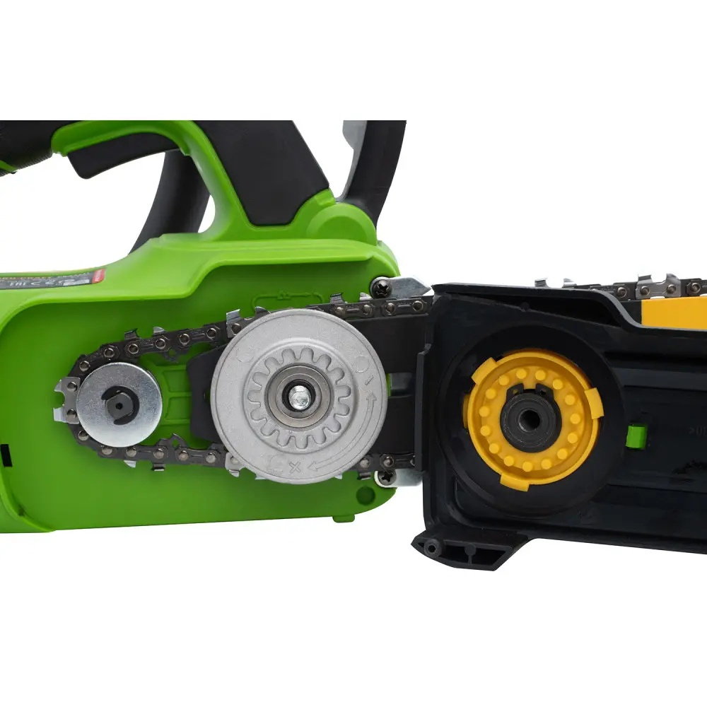 Modelul este echipat cu o lamă de 12” (30 cm), oferind o capacitate de tăiere generoasă și o stabilitate ridicată în utilizare. Sistemul de ungere automată a lanțului contribuie la o funcționare lină și la prelungirea duratei de viață a componentelor.