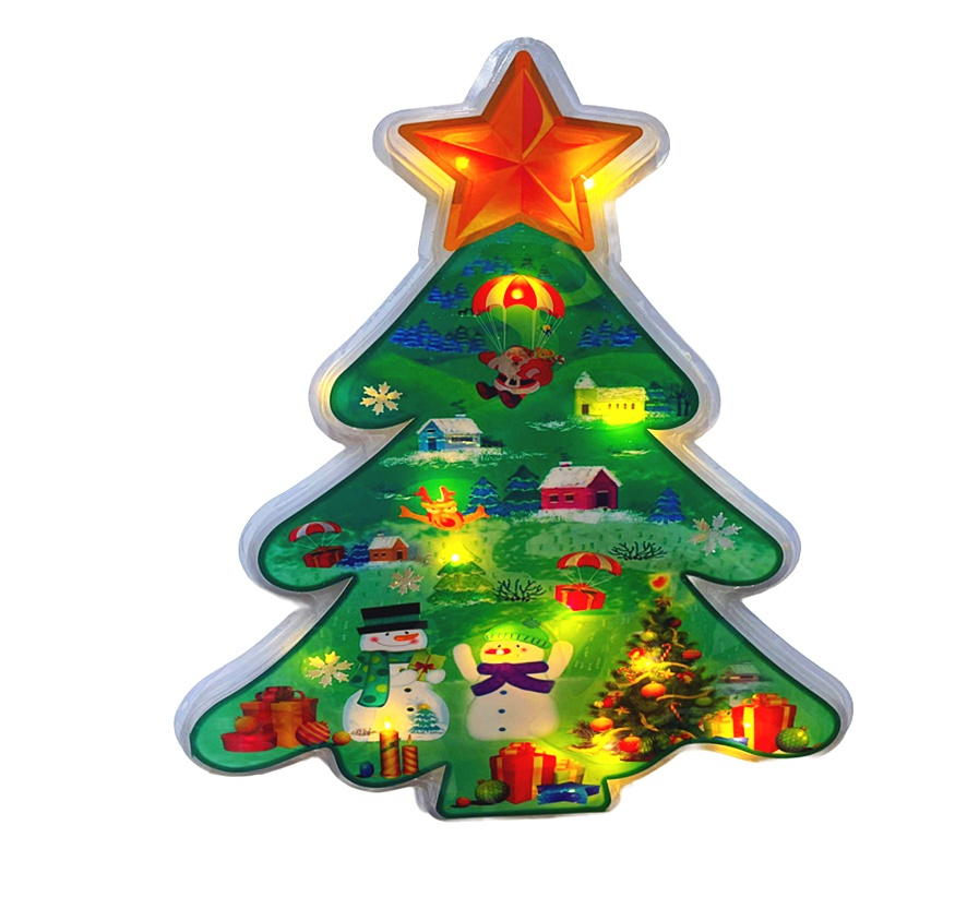 Produsul Figurina Craciun in forma de brad are dimensiunea de 39 x 50 cm si se alimenteaza de la priza 220 V.