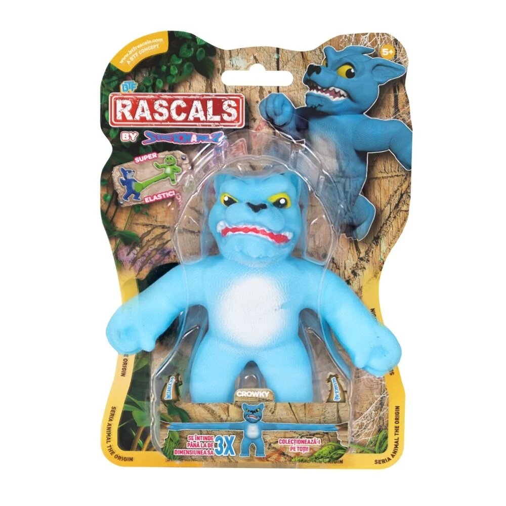 Figurina Crowky din colectia Rascals este un animalut flexibil si musculos, perfect pentru colectionari. Poate fi întins pâna la trei ori lungimea sa initiala, ajungând la 40 cm. Este conceput sa reziste la întinderi repetate, dar trebuie manipulat cu grija pentru a nu deteriora materialul. Aceasta jucarie este recomandata pentru copiii cu vârsta de peste 3 ani.