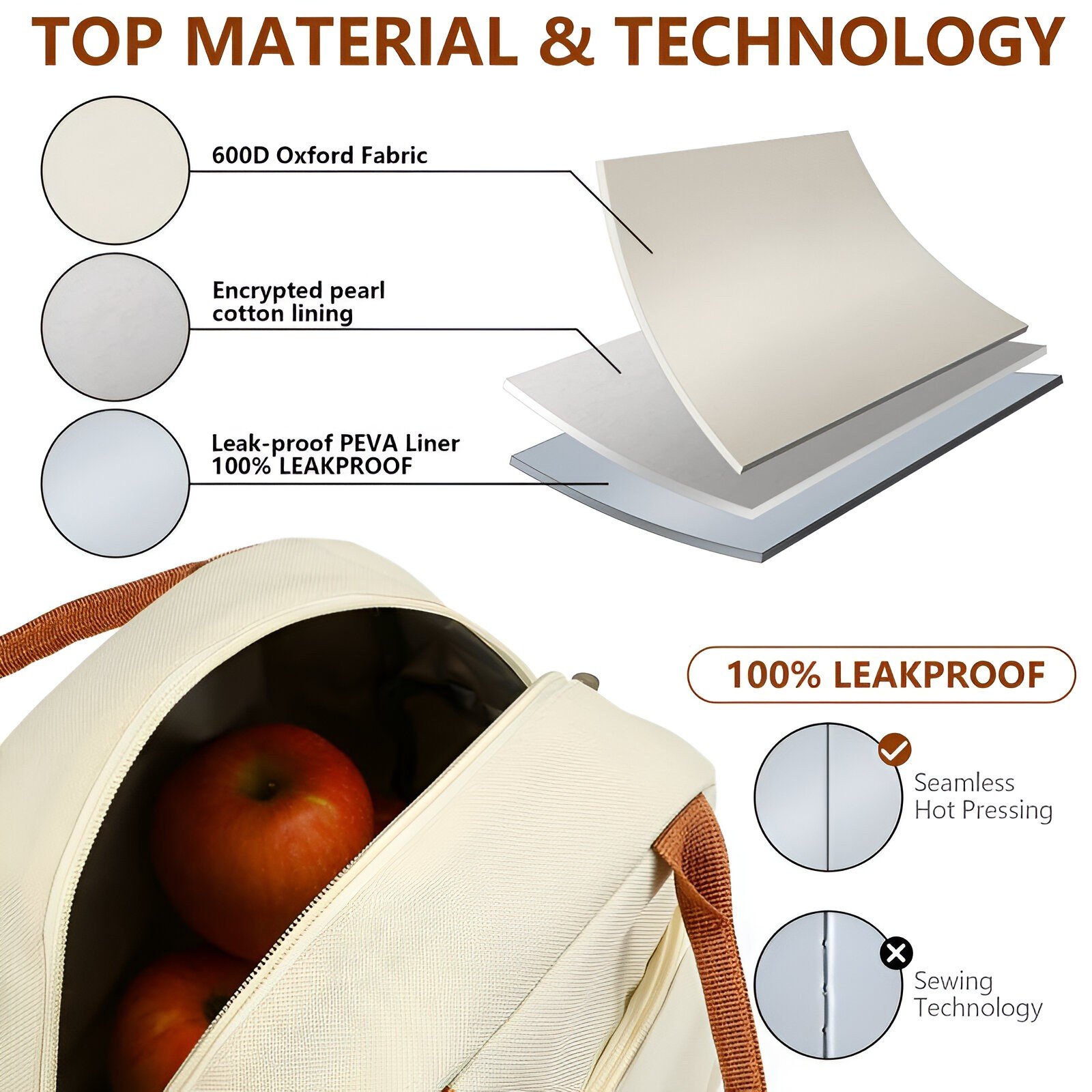 Geanta termica pentru pranz Flippy, multifunctionala, compartimentata, impermeabila, 2 tipuri de manere, 26 x 14.3 x 21.2 cm, Crem