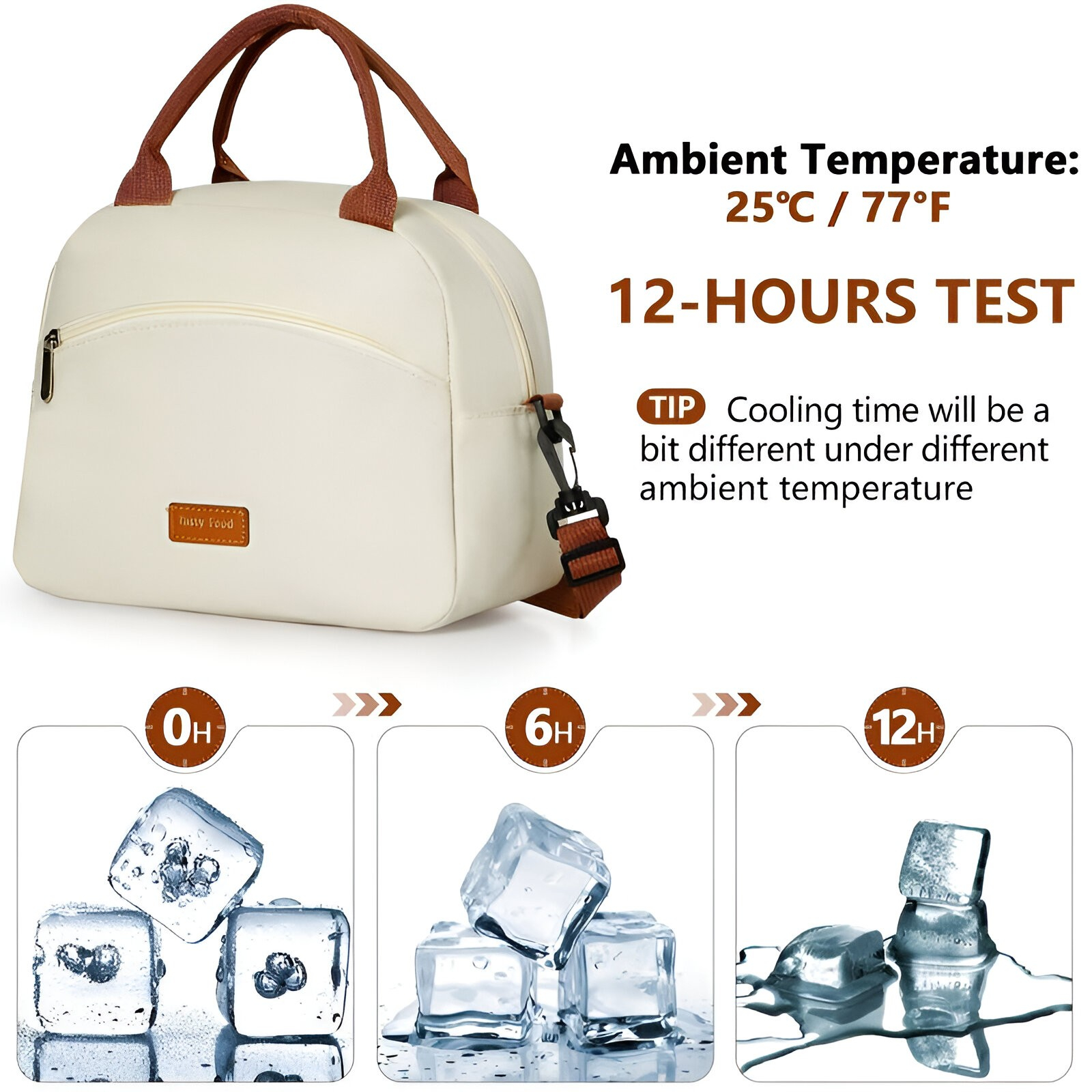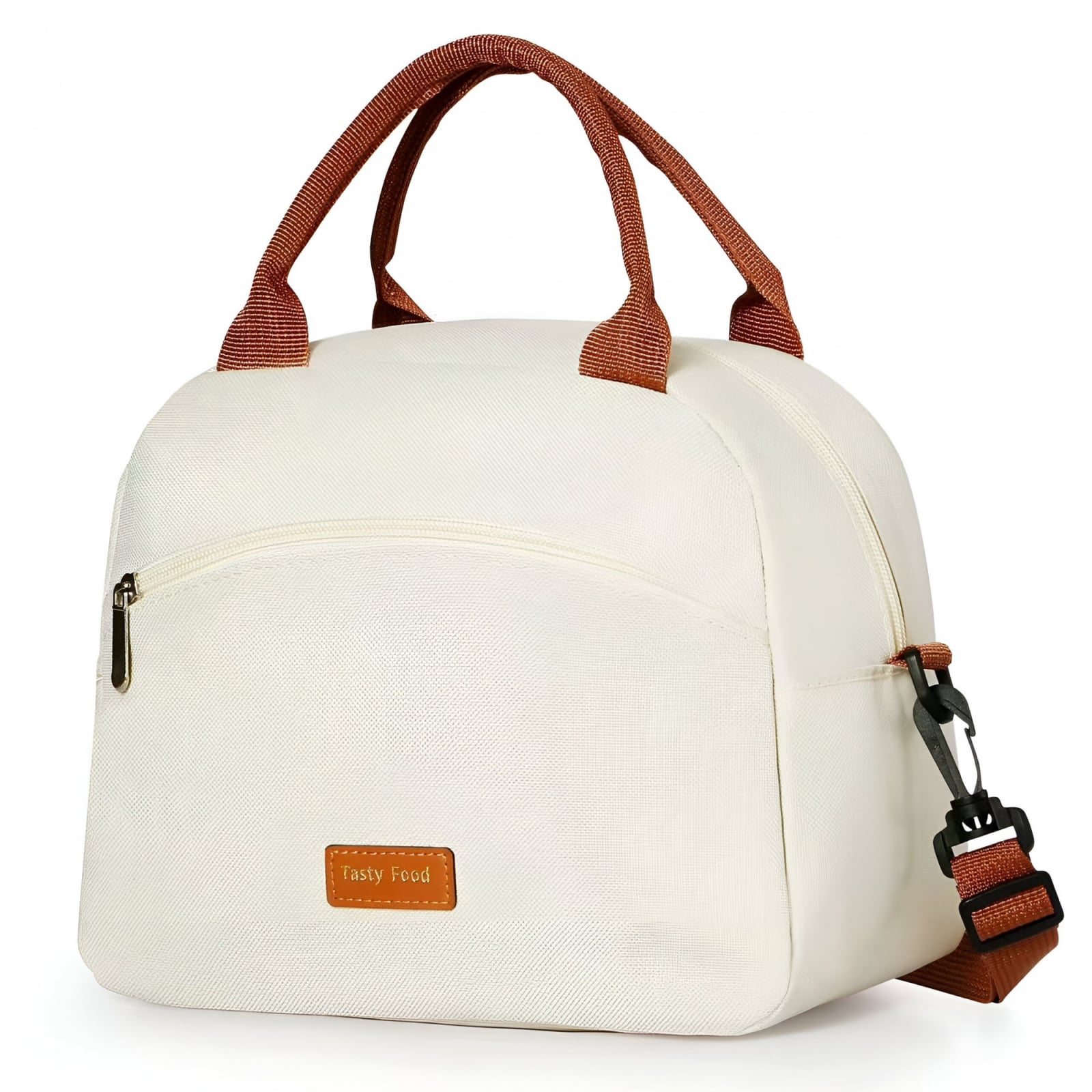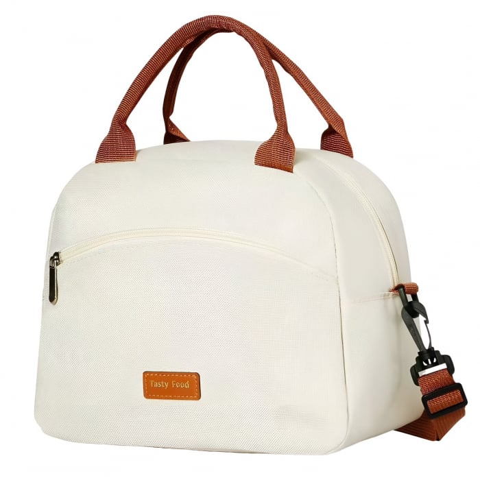 Geanta termica pentru pranz Flippy, multifunctionala, compartimentata, impermeabila, 2 tipuri de manere, 26 x 14.3 x 21.2 cm, Crem