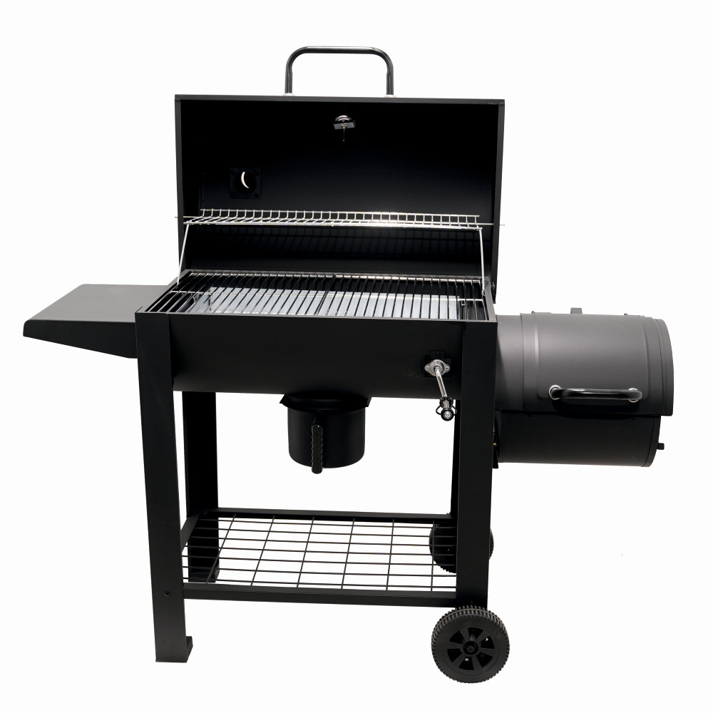 Gratar pe carbuni cu afumatoare KLUGMEISTER KY23020G, material otel, cu capac si roti de deplasare, suprafata gatire 66x42 cm