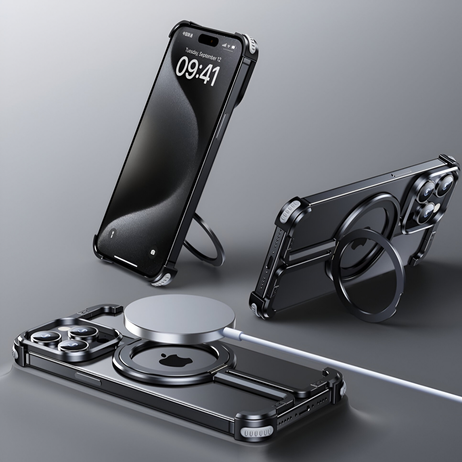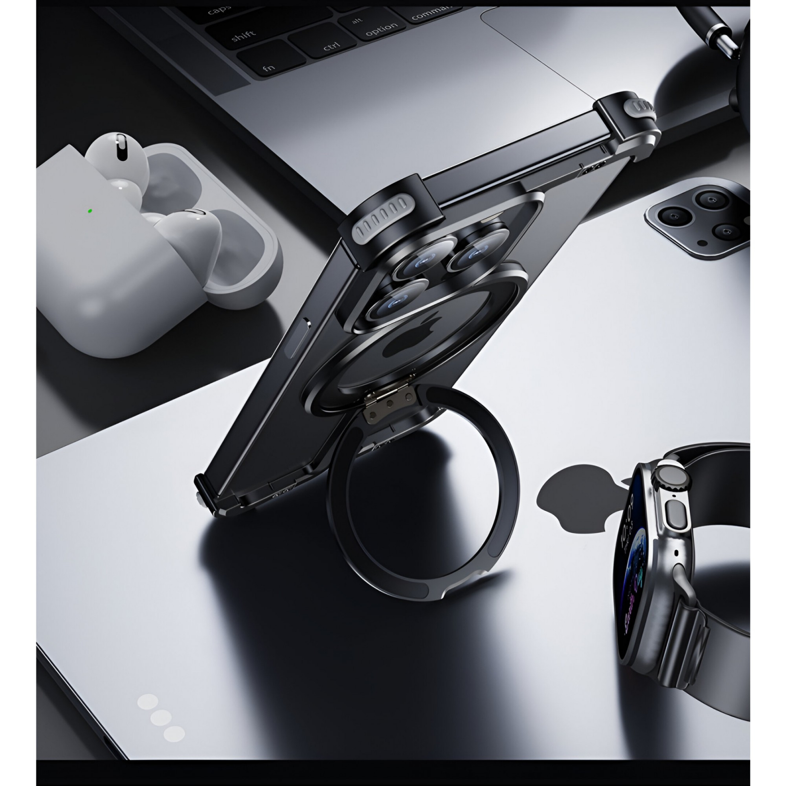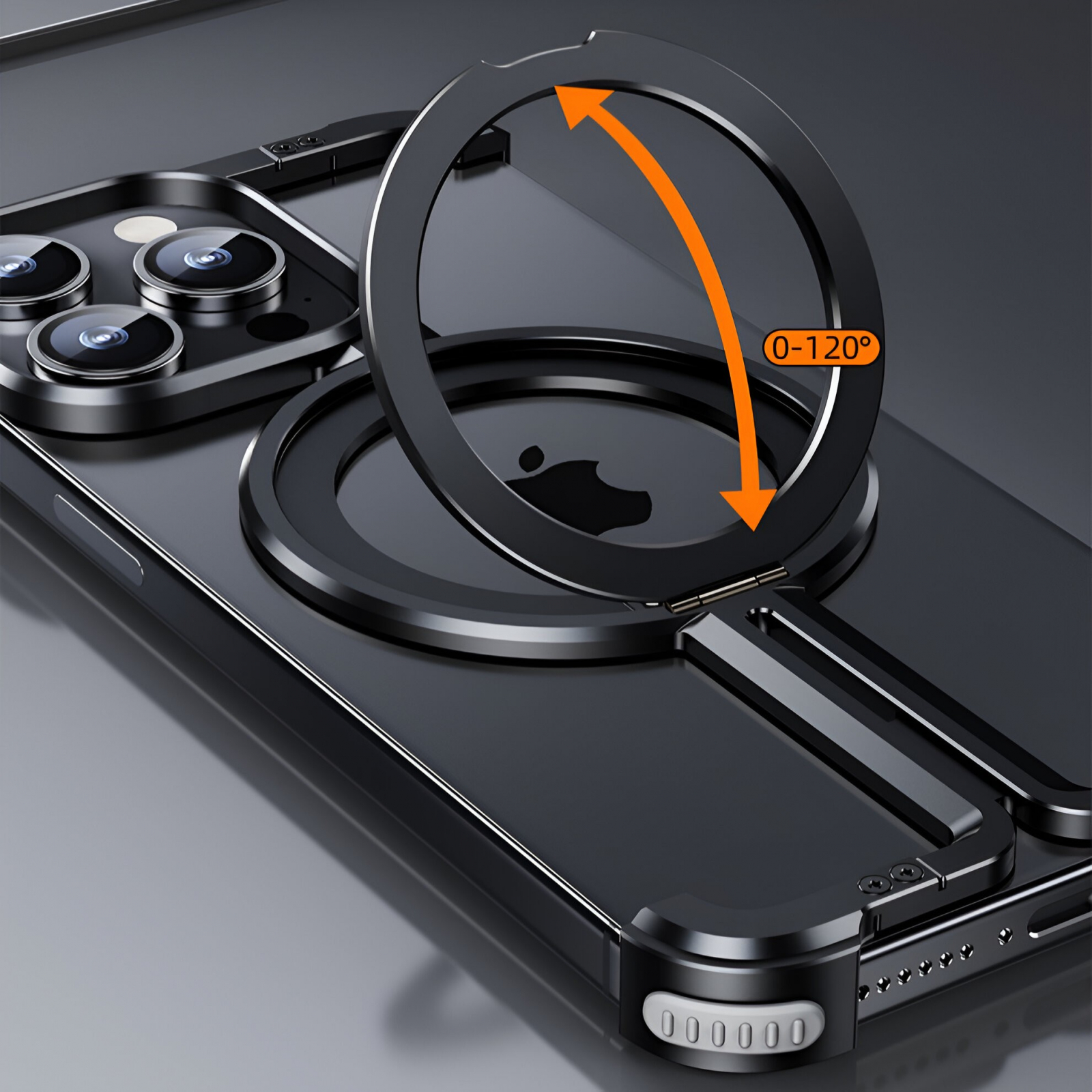 Această carcasă inovatoare pentru telefon are un inel compatibil MagSafe cu suport integrat, oferind nu numai un atașament magnetic sigur pentru încărcare rapidă, ci și confortul vizualizării hands-free. Perfect pentru vizionarea de videoclipuri sau chat video, combină funcționalitatea cu designul elegant.