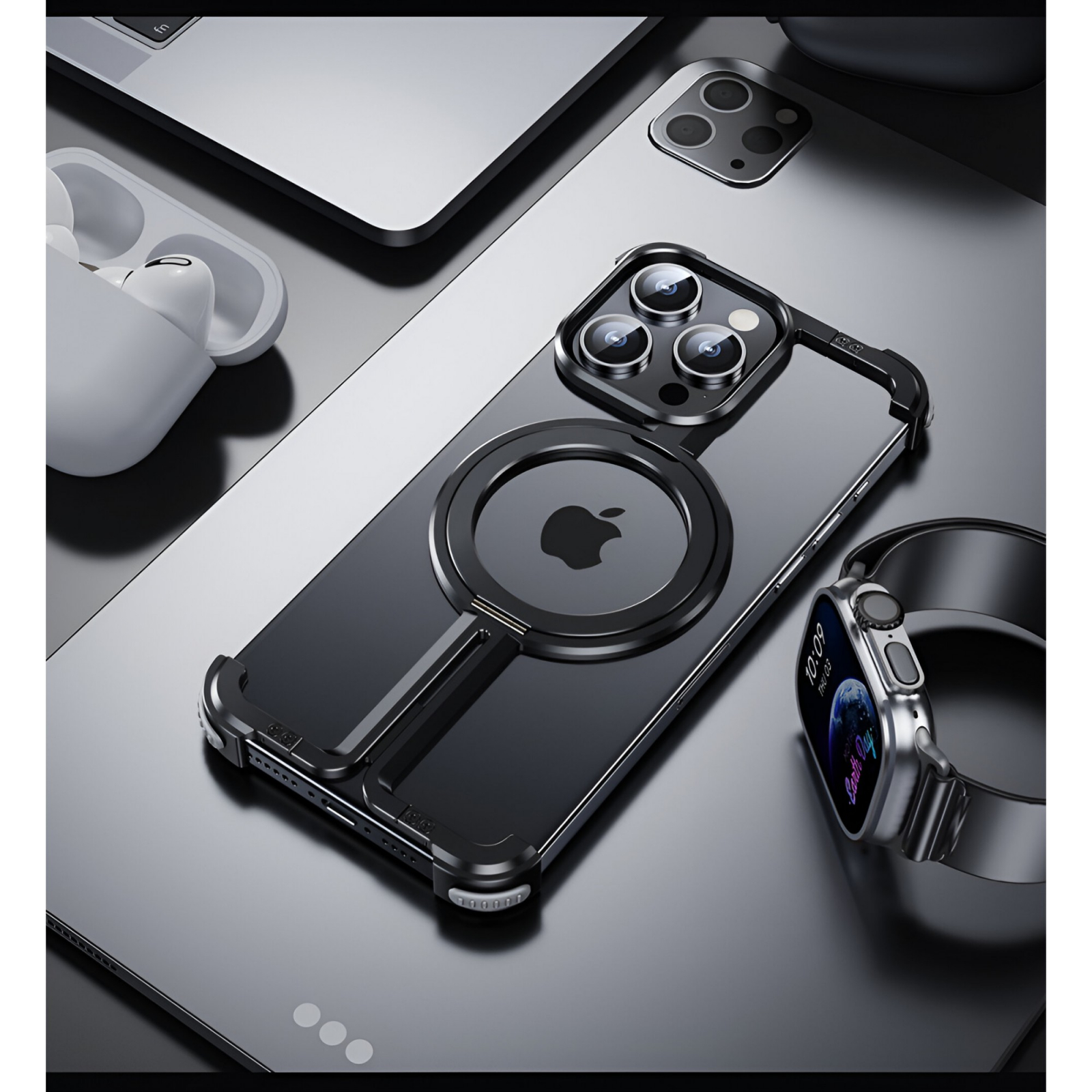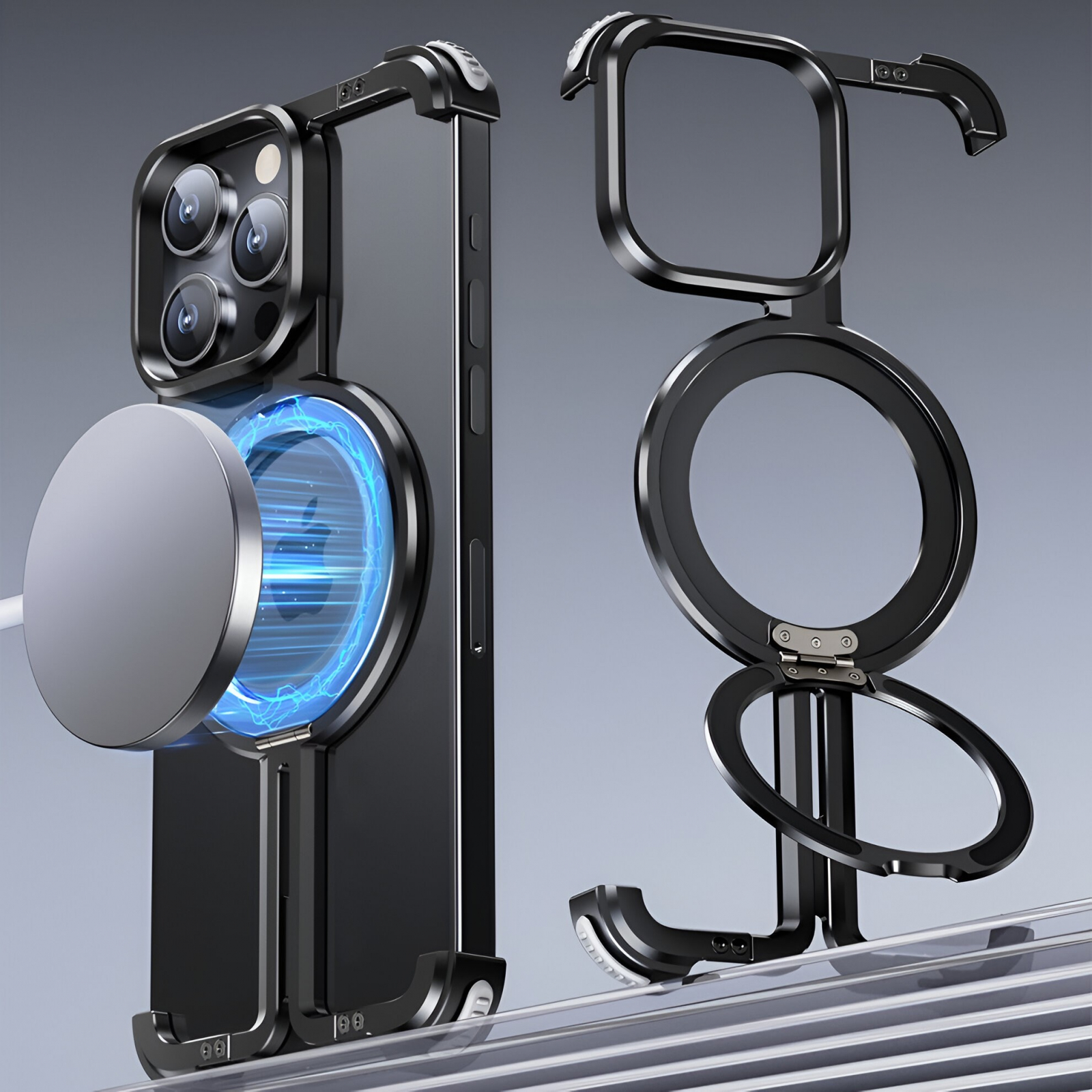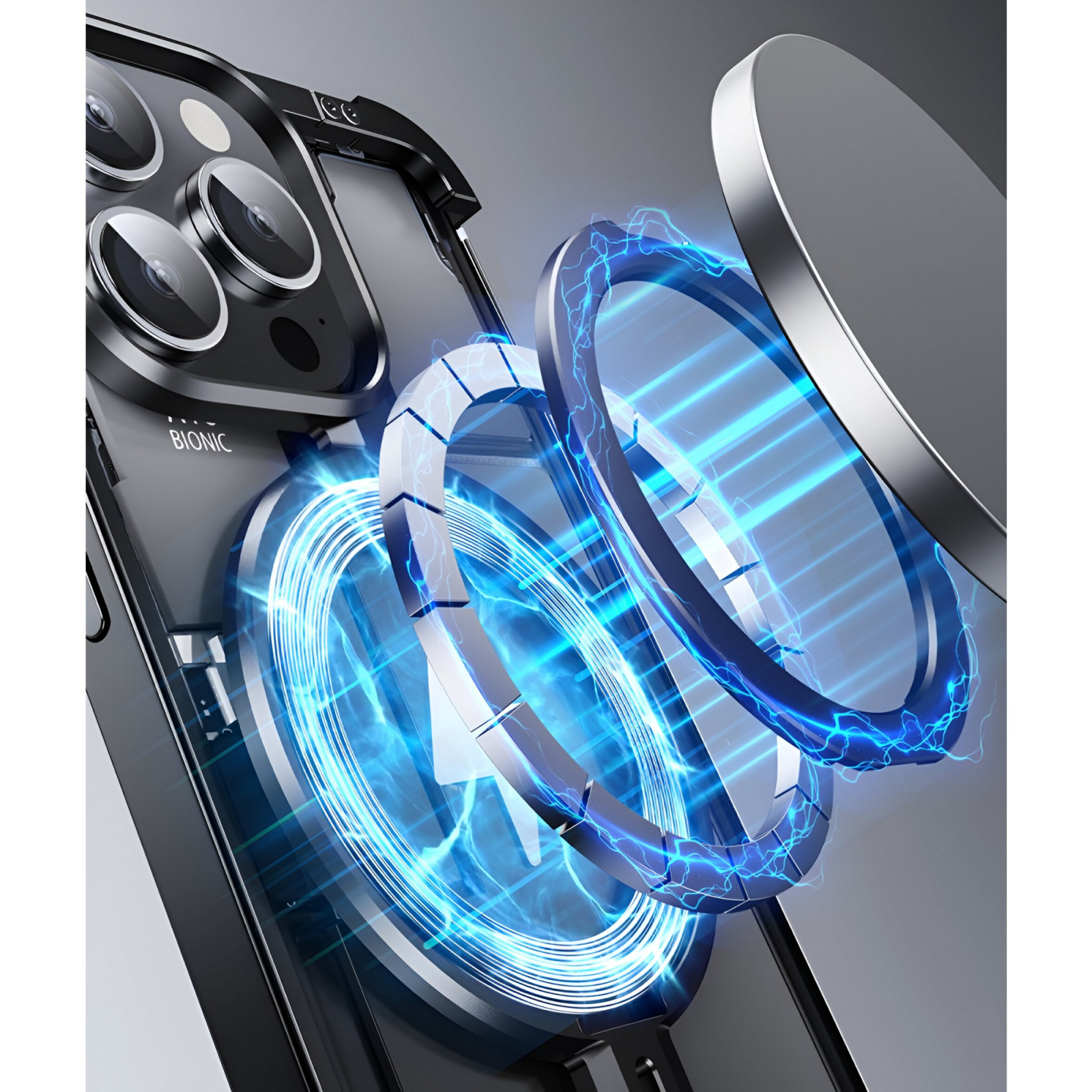 Această carcasă inovatoare pentru telefon are un inel compatibil MagSafe cu suport integrat, oferind nu numai un atașament magnetic sigur pentru încărcare rapidă, ci și confortul vizualizării hands-free. Perfect pentru vizionarea de videoclipuri sau chat video, combină funcționalitatea cu designul elegant.