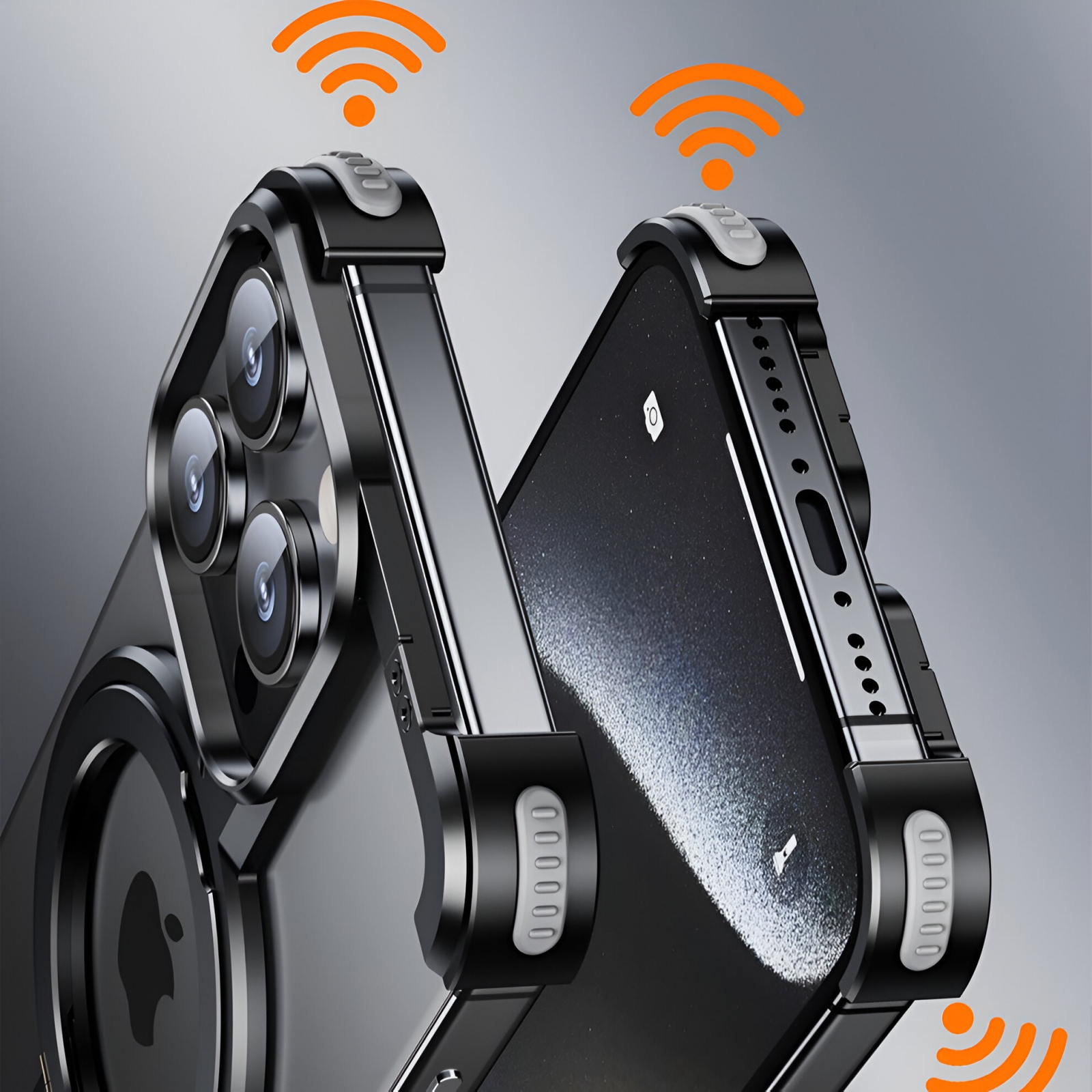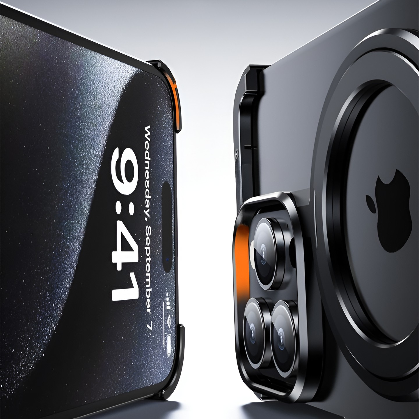 Carcasa noastră metalică iPhone 15 Pro are un design elegant, fără rame, oferind o atingere minimalistă și asigurându-vă că ecranul rămâne descoperit în timp ce disipează eficient căldura. Designul unic adaugă o notă de rafinament telefonului dvs., oferind o senzație de lux, făcându-l și mai elegant.