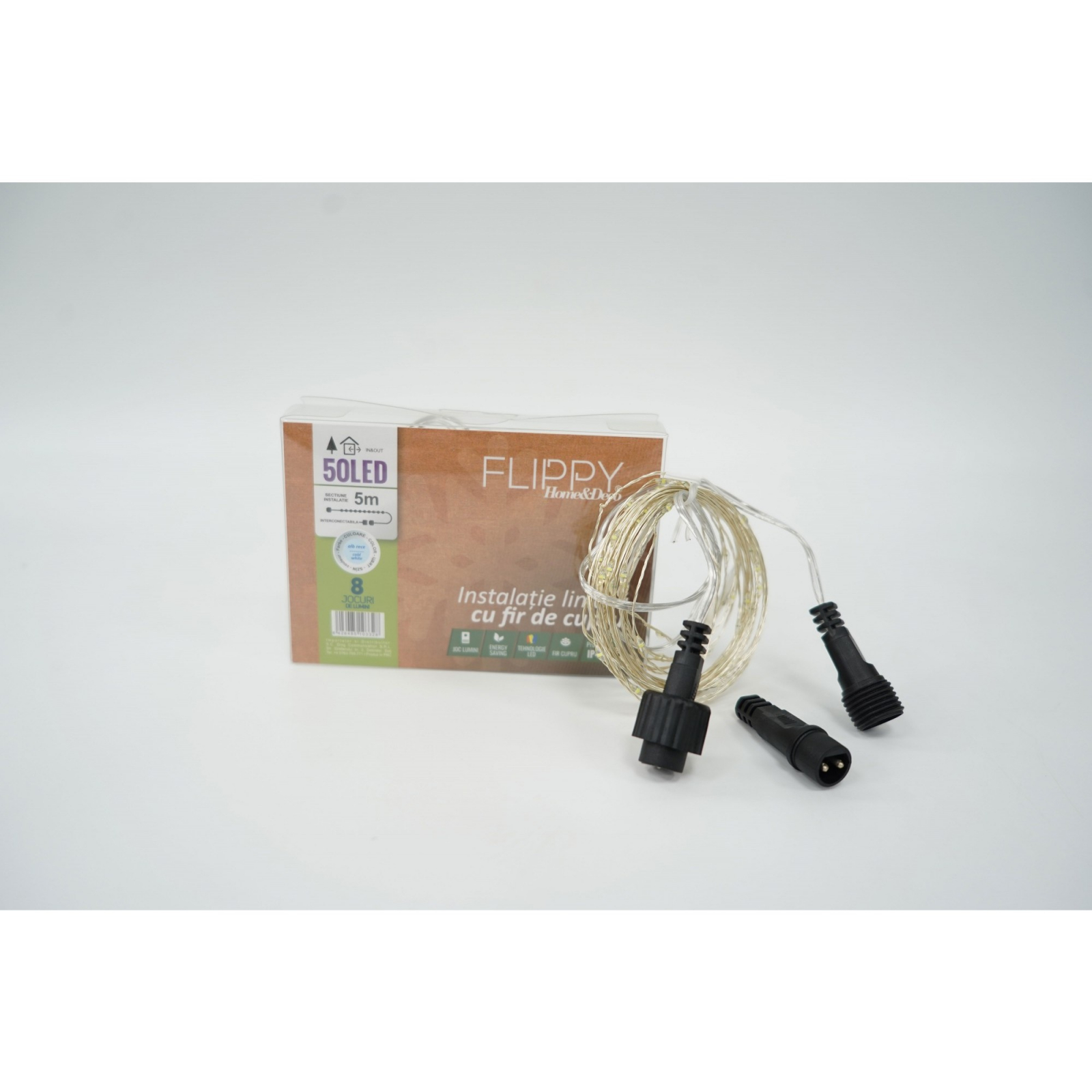 Instalatia de Craciun Flippy de tip liniar se poate folosi pentru decoratiuni interioare si exterioare, fiind prevazuta cu protectie IP44( material rezistent la umezeala/ inghet si protejeaza impotriva patrunderii corpurilor straine solide cu diametru 1 mm si mai mari).