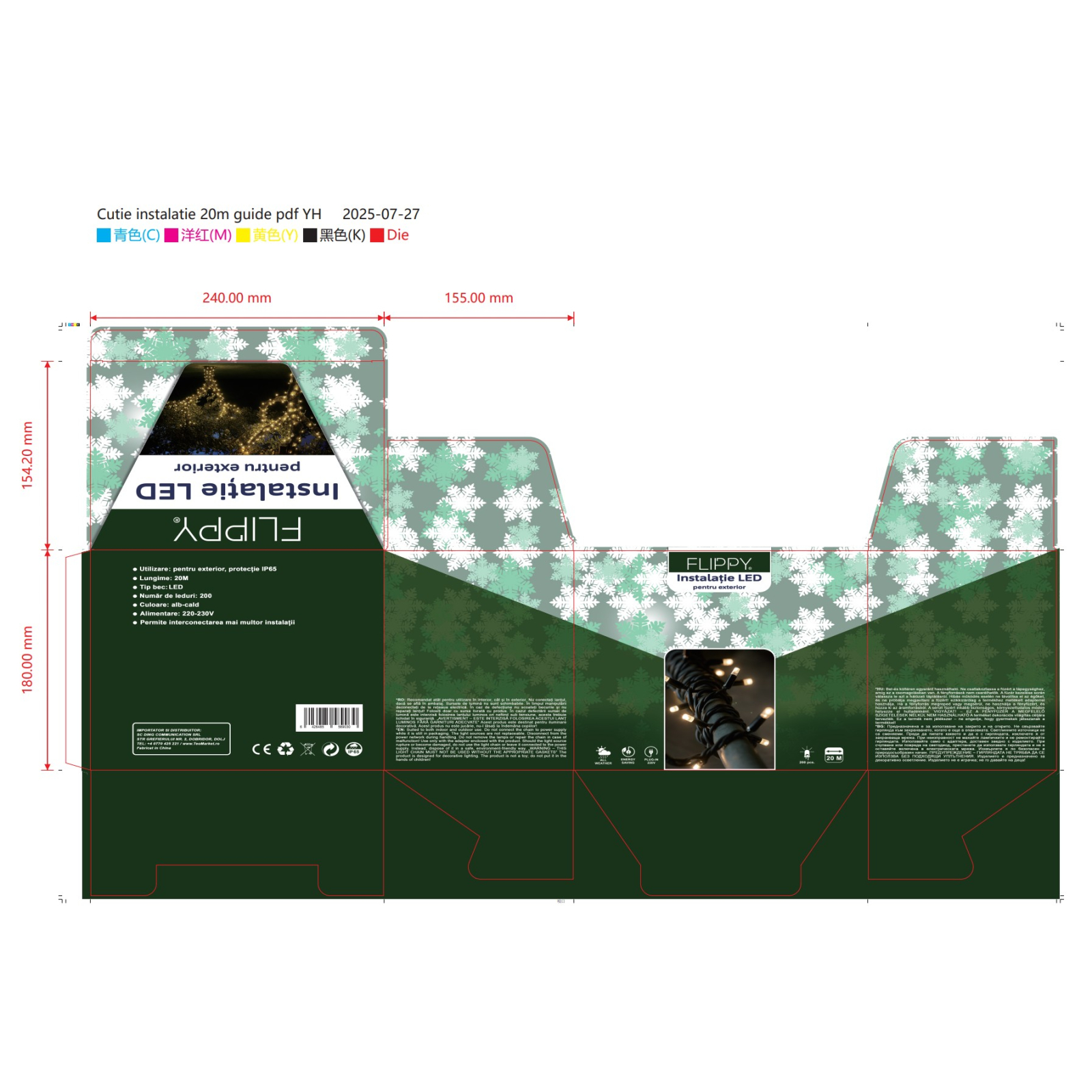 Instalatie Craciun Liniara exterior IP65, cu Alimentator 1.5 m inclus, 20 metri, 200 LED, Alb Cald