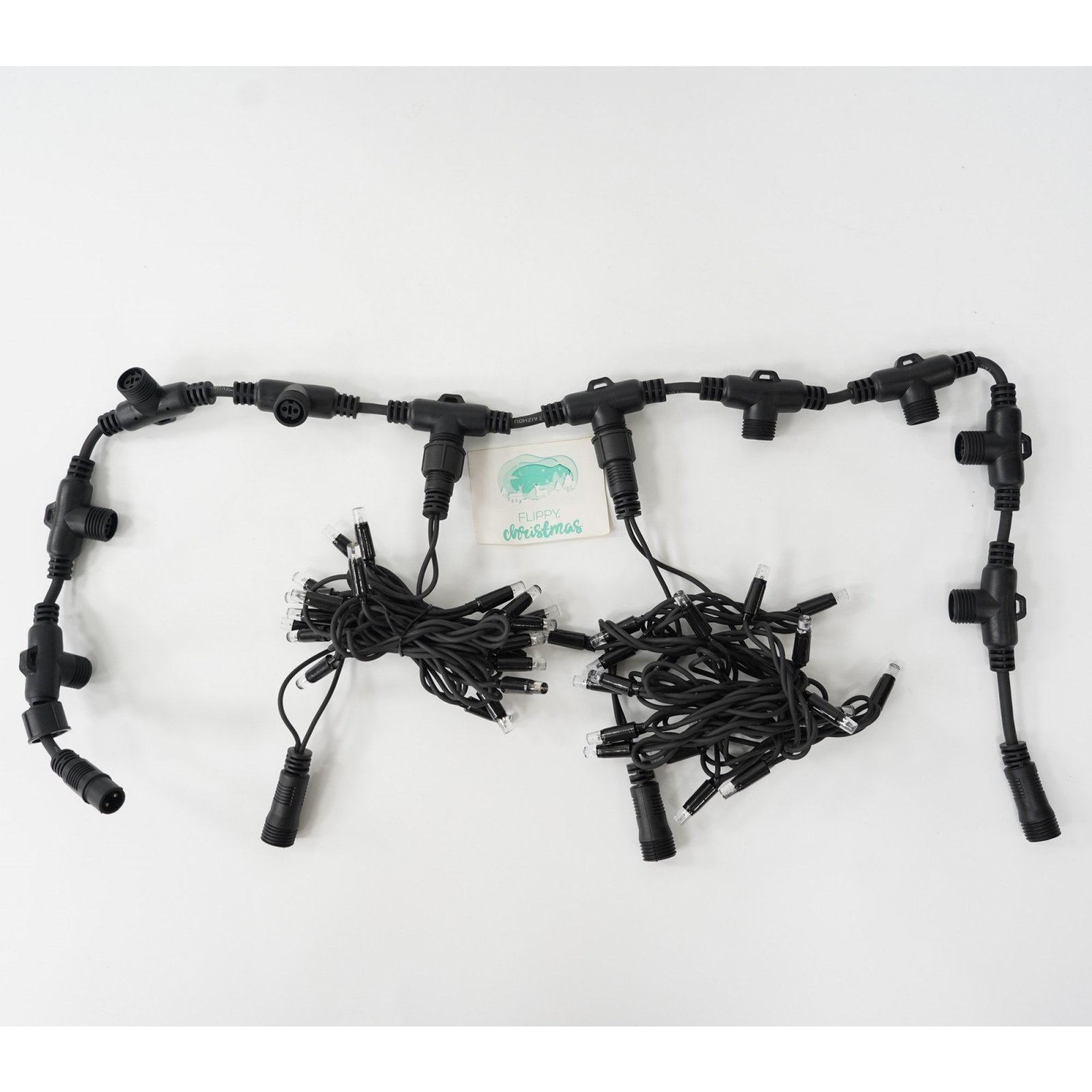 Instalatia luminoasa Flippy de tip perdea este compusa din 9 tronsoane de 1 m, cu 90 capete la care se adauga instalatii luminoase pentru un numar de 1800 LED-uri, de culoare alb rece,realizat dintr-un silicon negru anti-inghet, iar firele electrice sunt fabricate din cupru.
