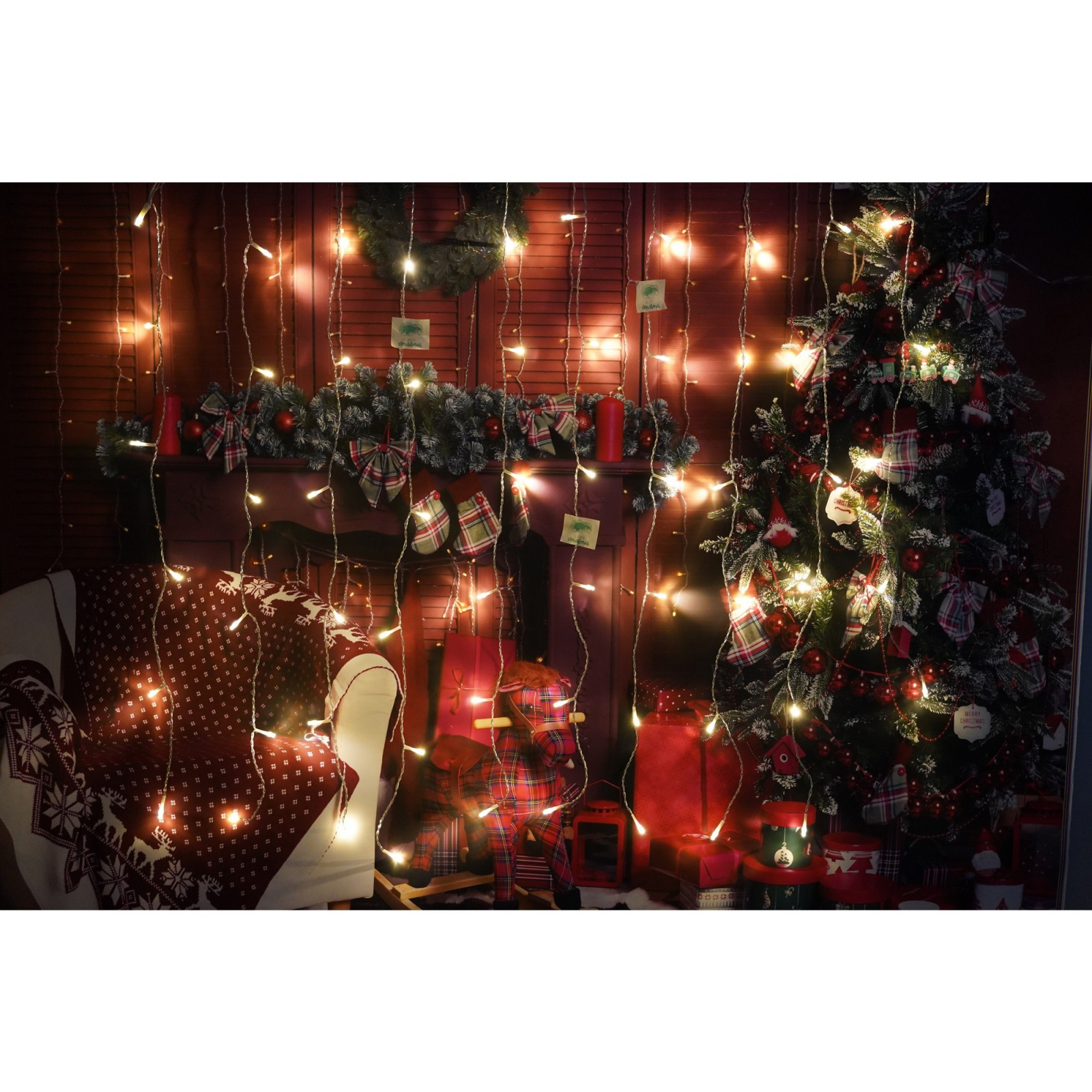 Instalatie Craciun, Tip Perdea, IP44, 17 m x 1 m, 1020 LED-uri, Alb cald, 8 jocuri de lumini, Transformator, Interconectabila, Prelungitor 3 m inclus, Fir transparent, Interior/ Exterior, Flippy