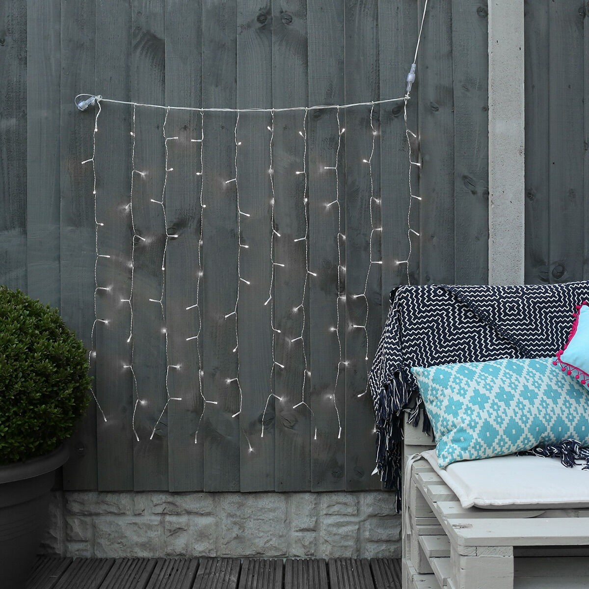 Instalatia luminoasa de Craciun este de tip perdea si se foloseste de obicei la decorarea caselor, ferestrelor, peretilor, zidurilor, gardurilor sau la streasina.