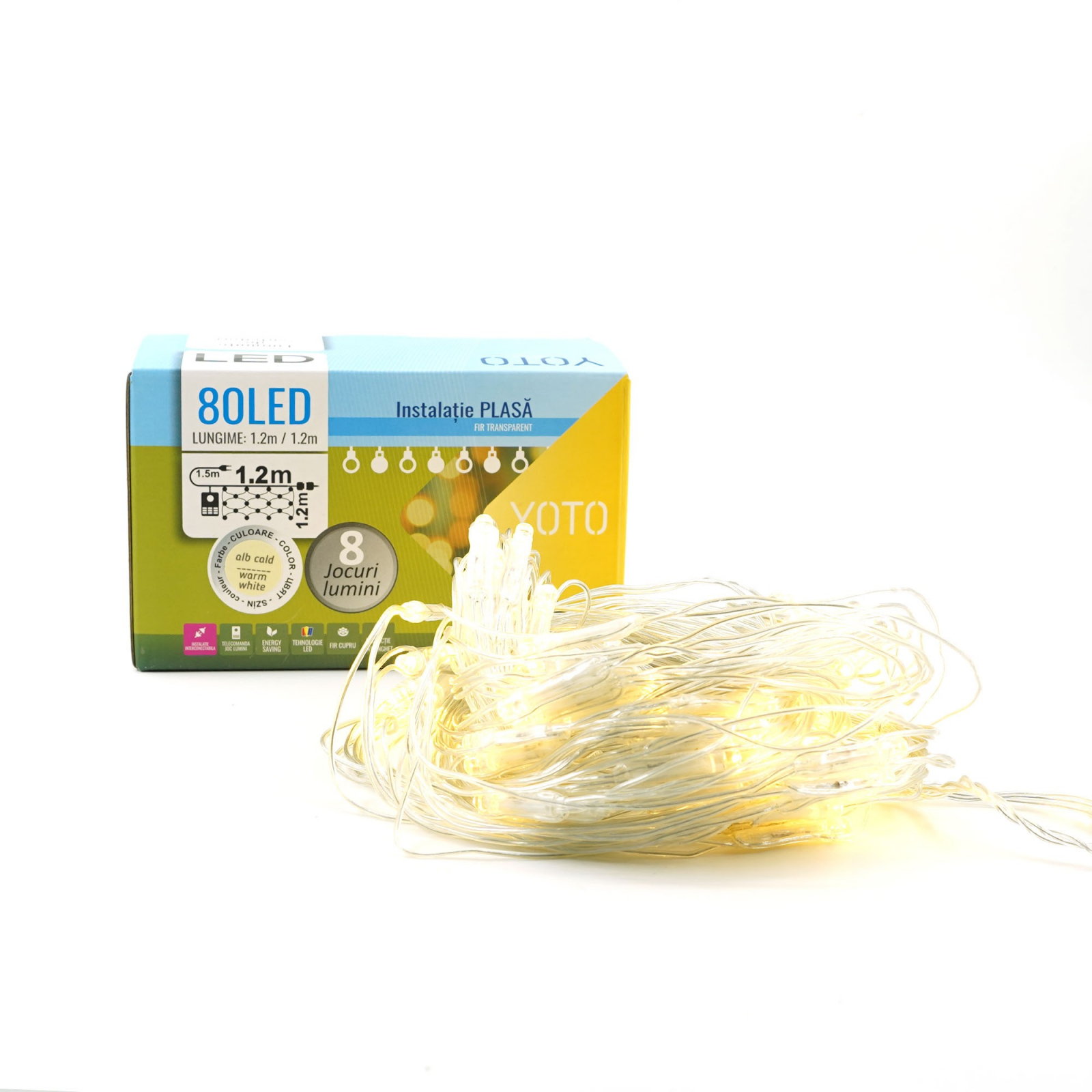 Specificații Tehnice ale Instalației de Crăciun Yoto Tip Plasă 1.2 m x 1.2 m: