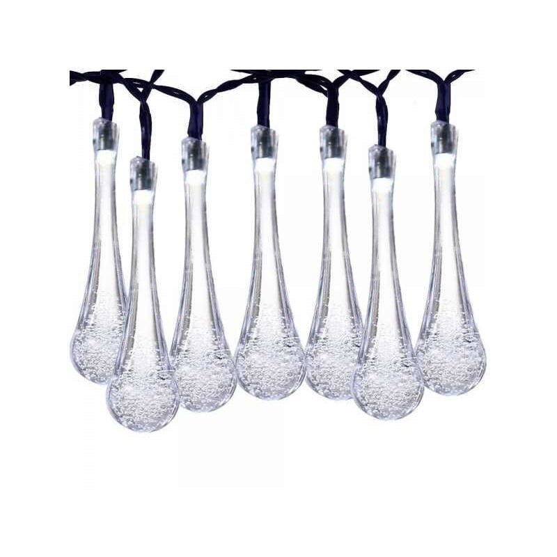 Nume: Decoratiune xu incarcare solara, tip picaturi, 6 metri, 28 de leduri, alb rece