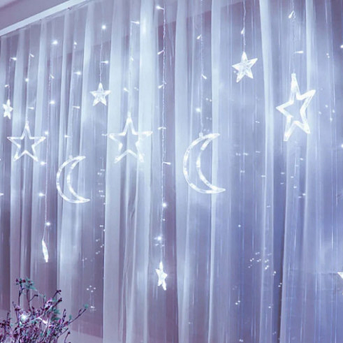 Instalatie tip ghirlanda stele cu luna luminoase  3 x 1 m, interconectabila, alb rece